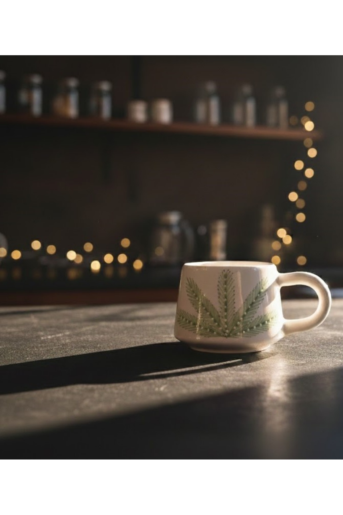 ميزات كوب منقوش بنقش شجرة الصنوبر، كوب سيراميك، كوب مصنوع يدويًا من Artiser