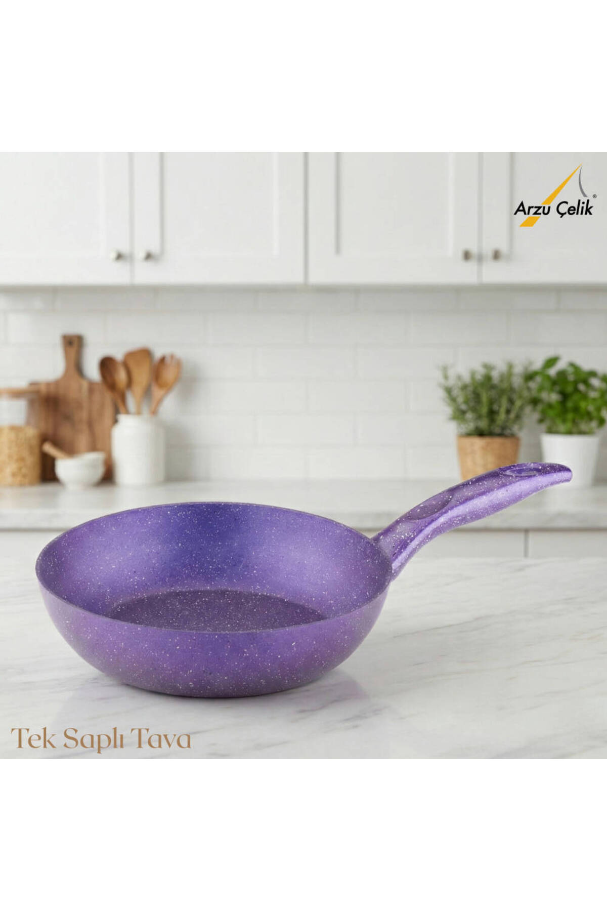 Arzu Çelik مقلاة جرانيت بمقبض واحد مقاس 22 سم - بنفسجي