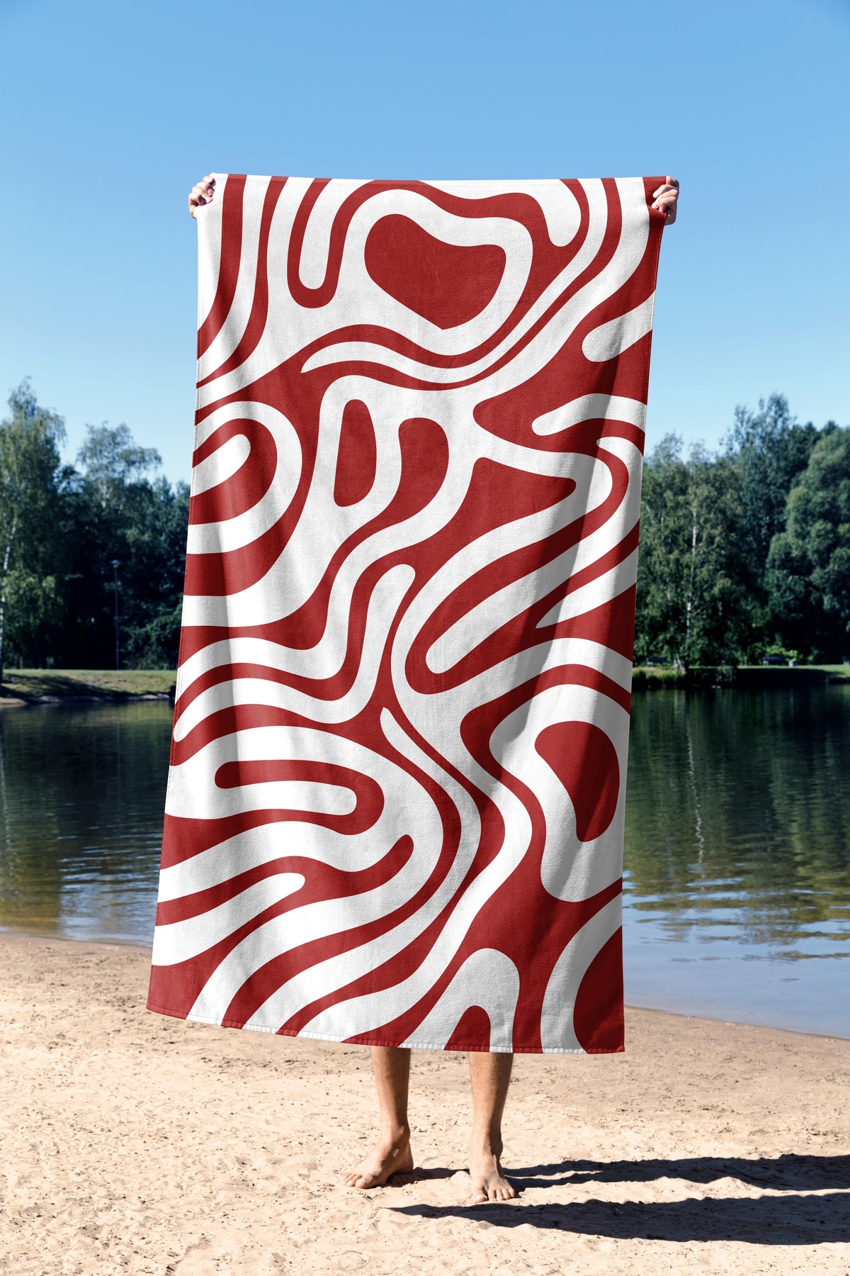 ميزات منشفة شاطئ بنمط موجة - أحمر - 75x150 سم من ASDİVA