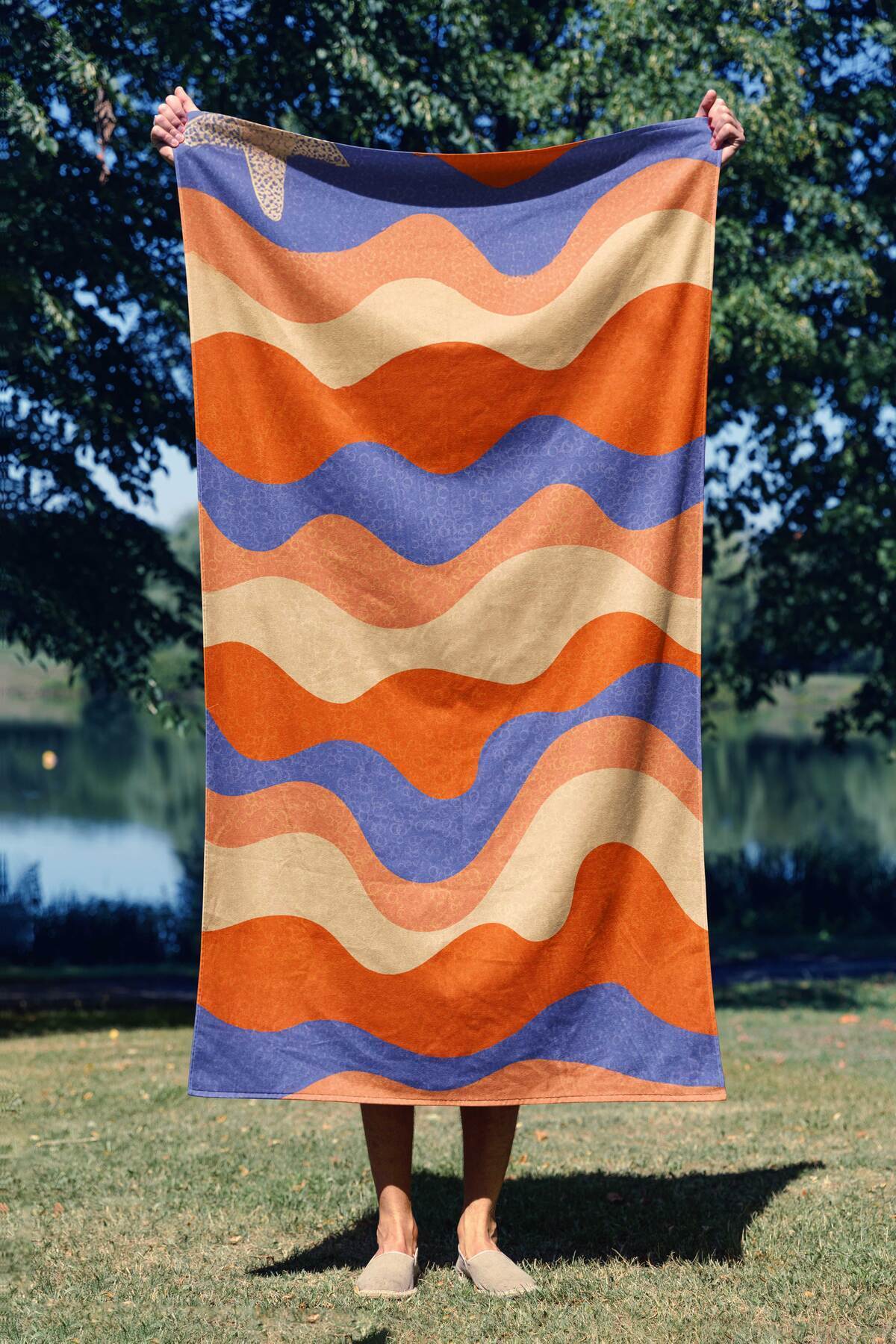 ميزات منشفة شاطئ بطباعة رقمية بنمط موجة مقاس 75 × 150 من ASDİVA