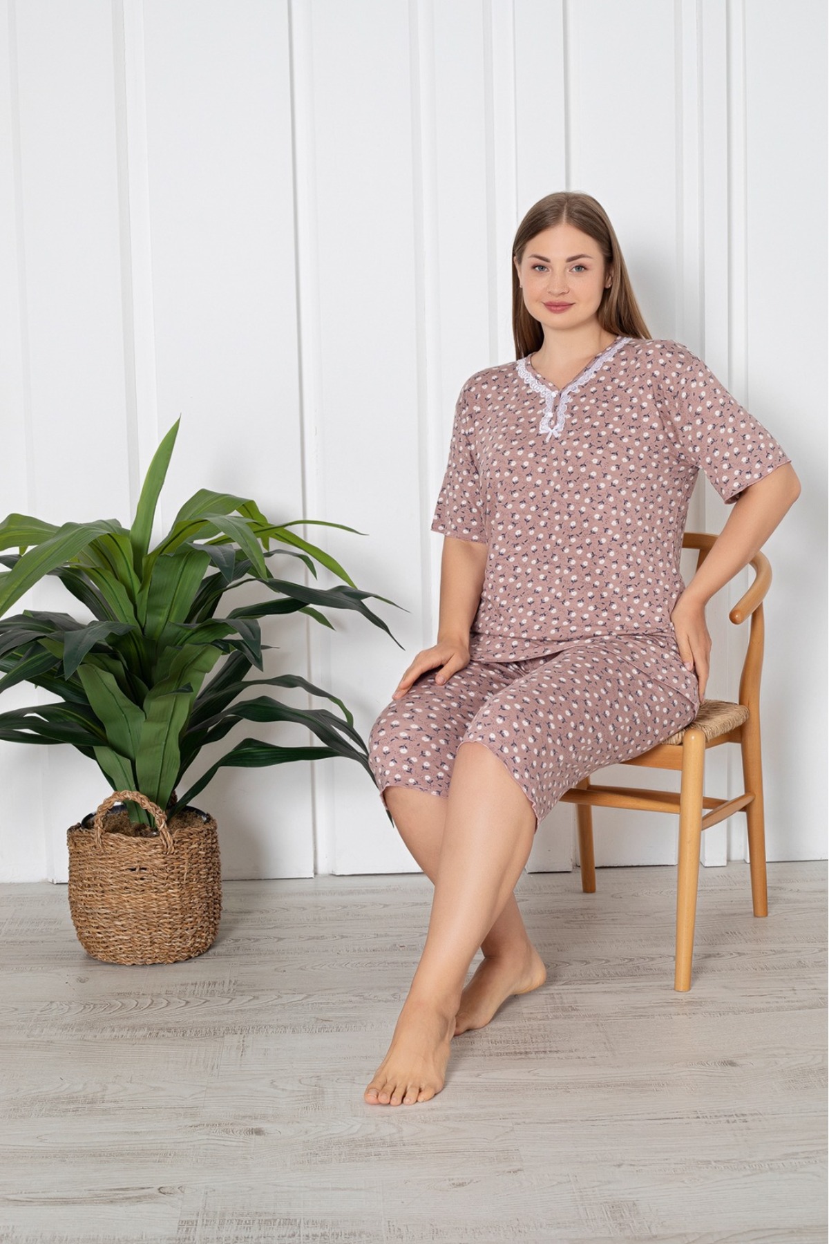 ميزات طقم بيجامة كابري من القطن الممشط من الليكرا مقاس كبير من Asel