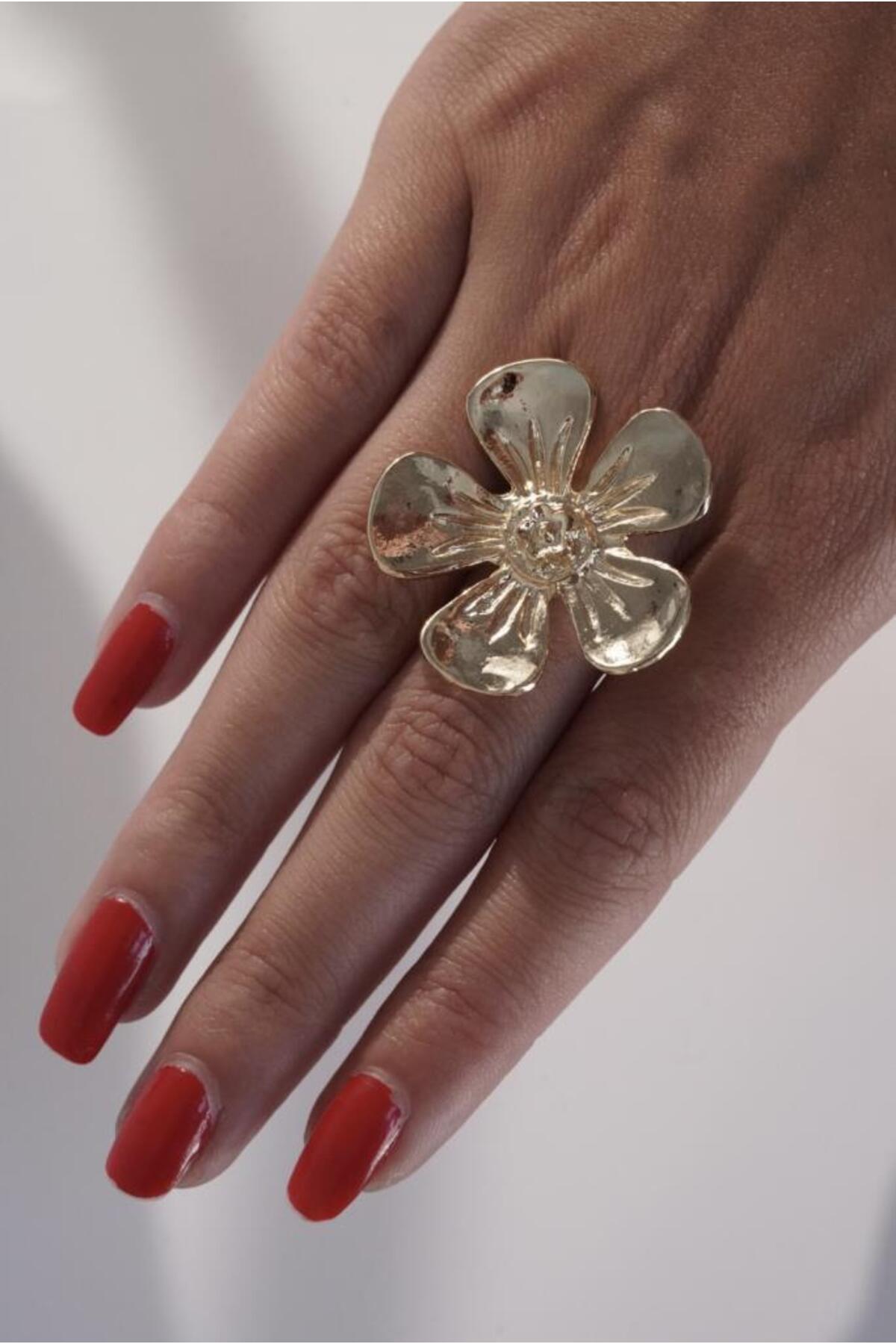AŞIK ACCESSORIES خاتم زهرة كبير الحجم قابل للتعديل