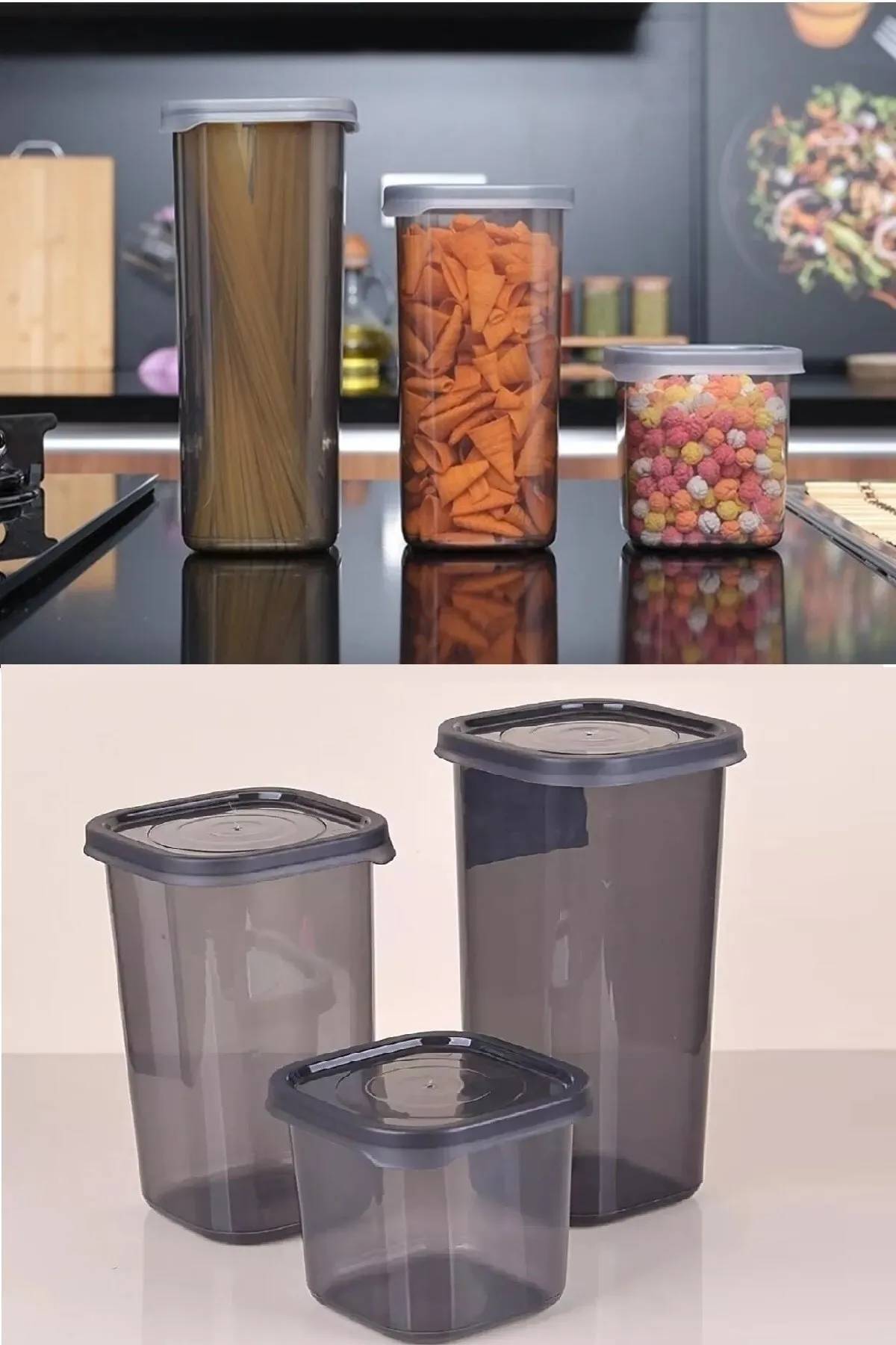 astemavm حاوية تخزين طعام مربعة عمودية ثلاثية الحجم من أنثراسايت مع غطاء مانع للتسرب