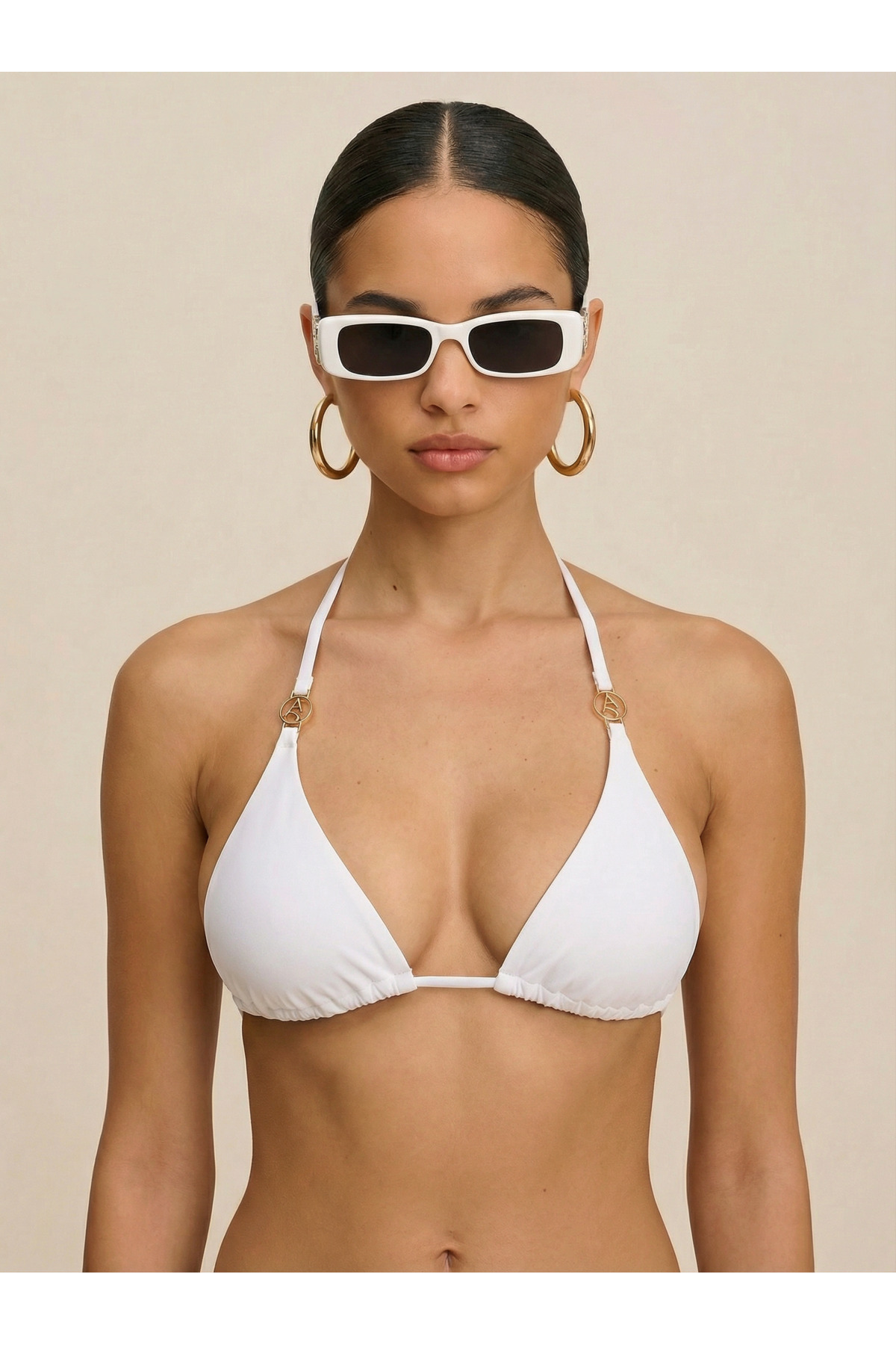 ATAF بلوزة بيكيني أساسية للشاطئ، لون أبيض، مقاس L