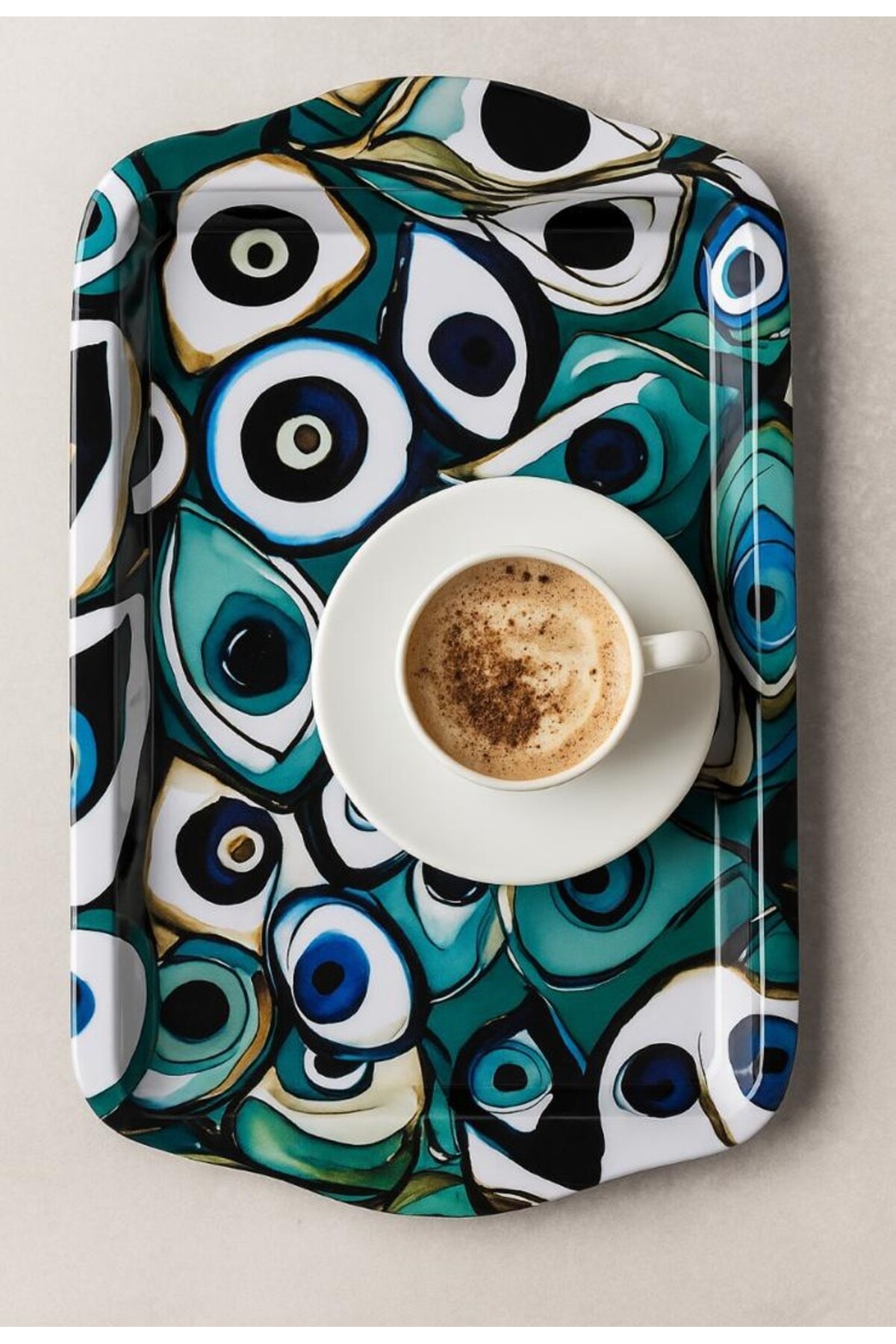 ميزات صينية تقديم مستطيلة حديثة بنقشة عين الحسد، حجم صغير 15×25 سم من ATAGİFT HEDİYELİK