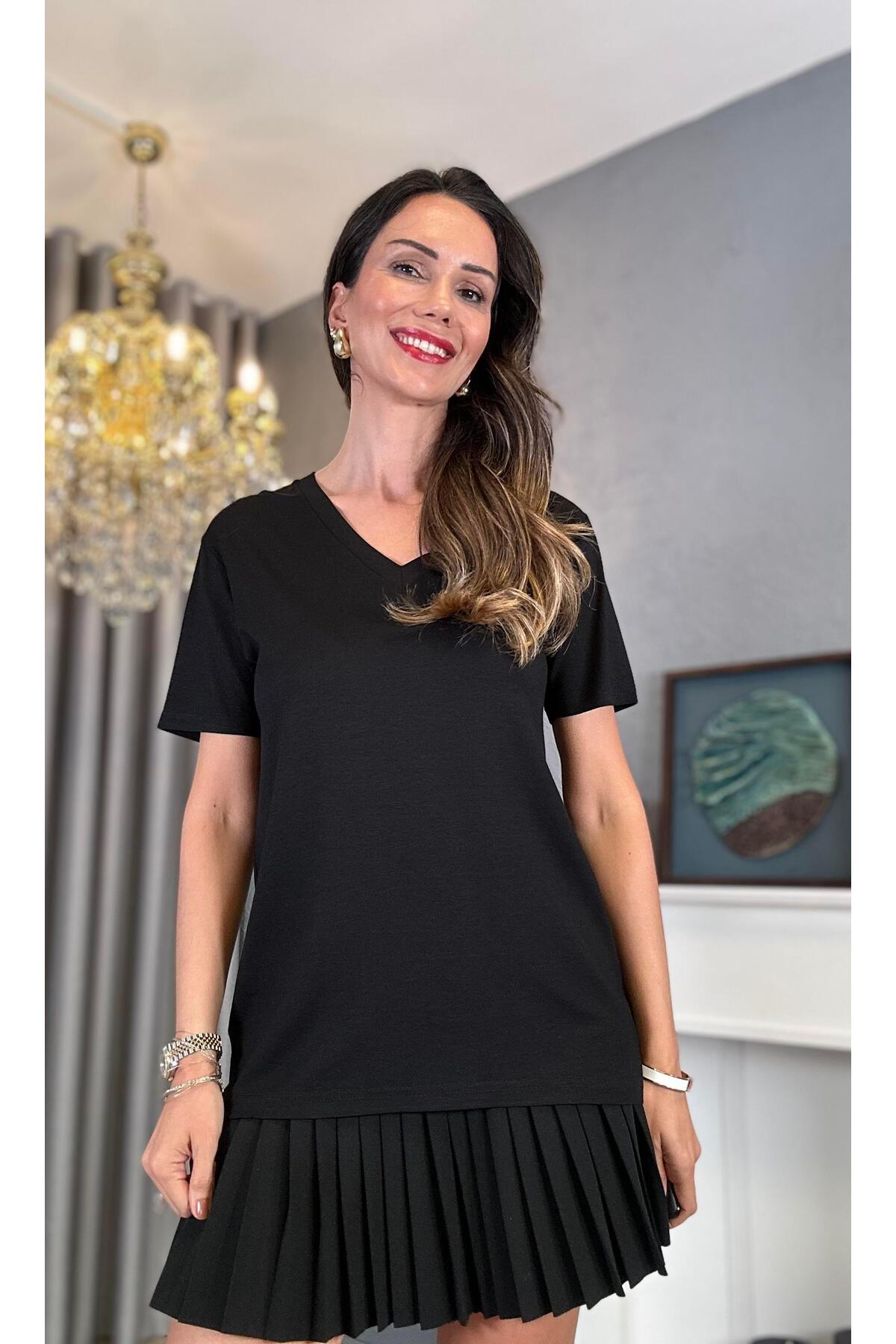 ميزات تي شيرت أسود برقبة على شكل حرف V - موديل أساسي من Atelier Derin