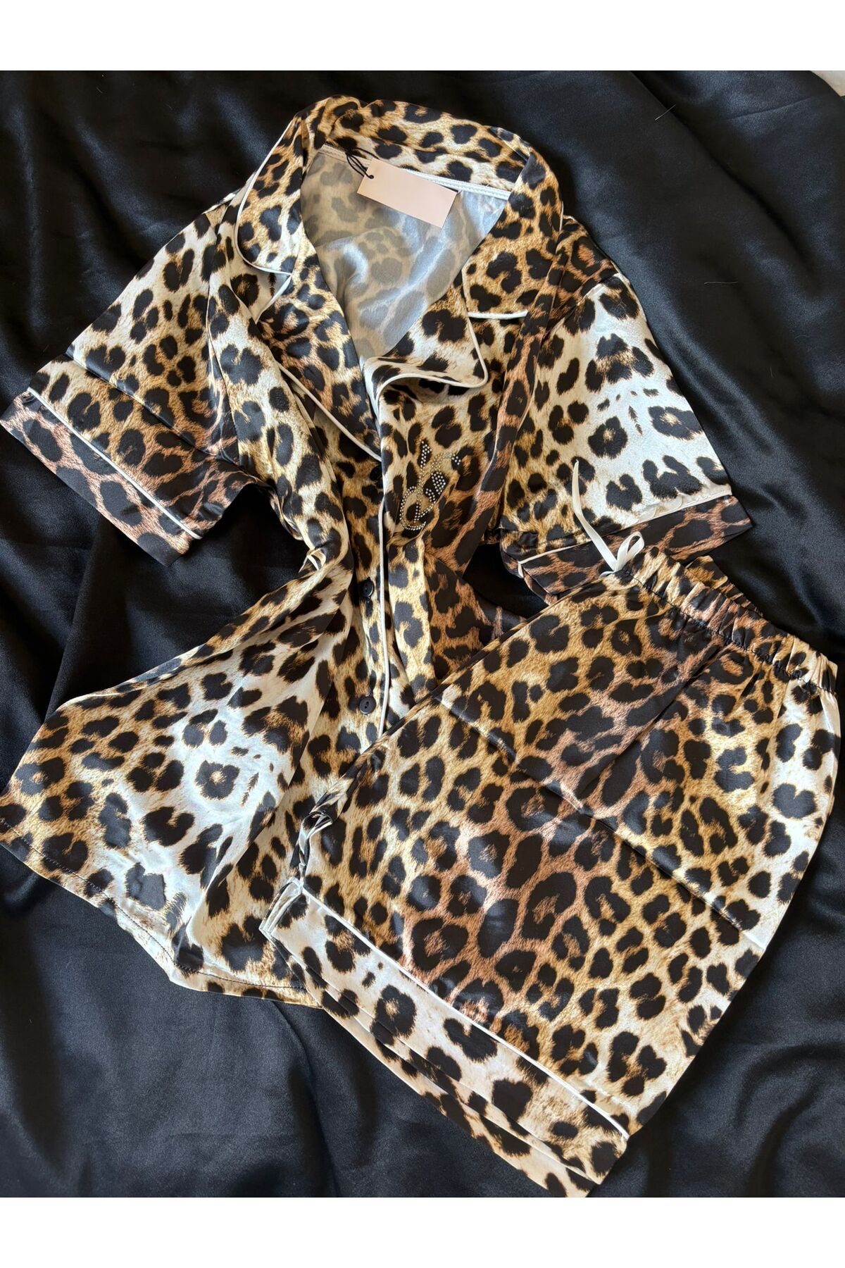 ميزات طقم ساتان مع شورت بنقشة الفهد من ateviaco