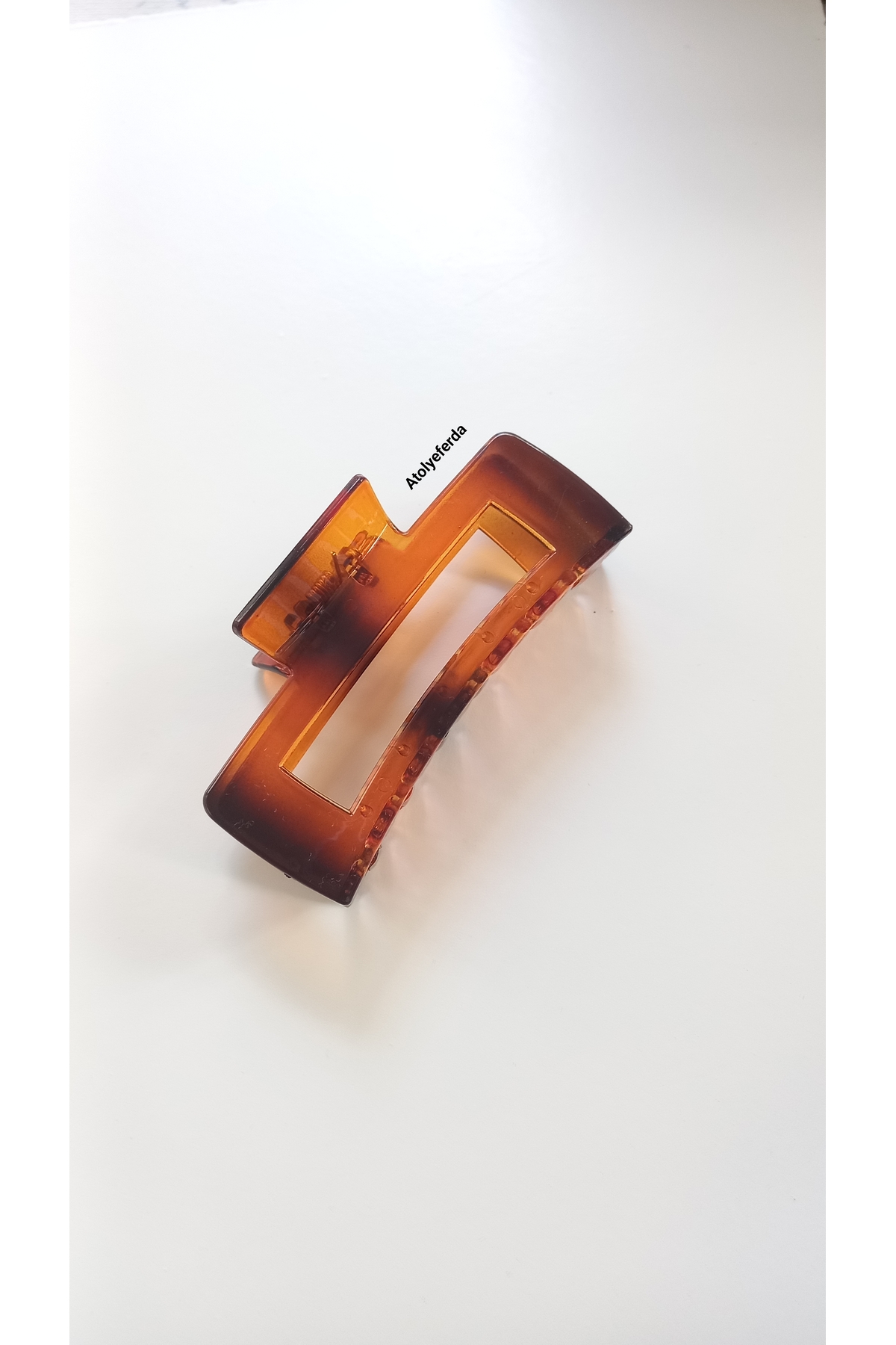 Atolye Ferda مشبك مزلاج بلون كهرماني مستطيل الشكل (11 سم)