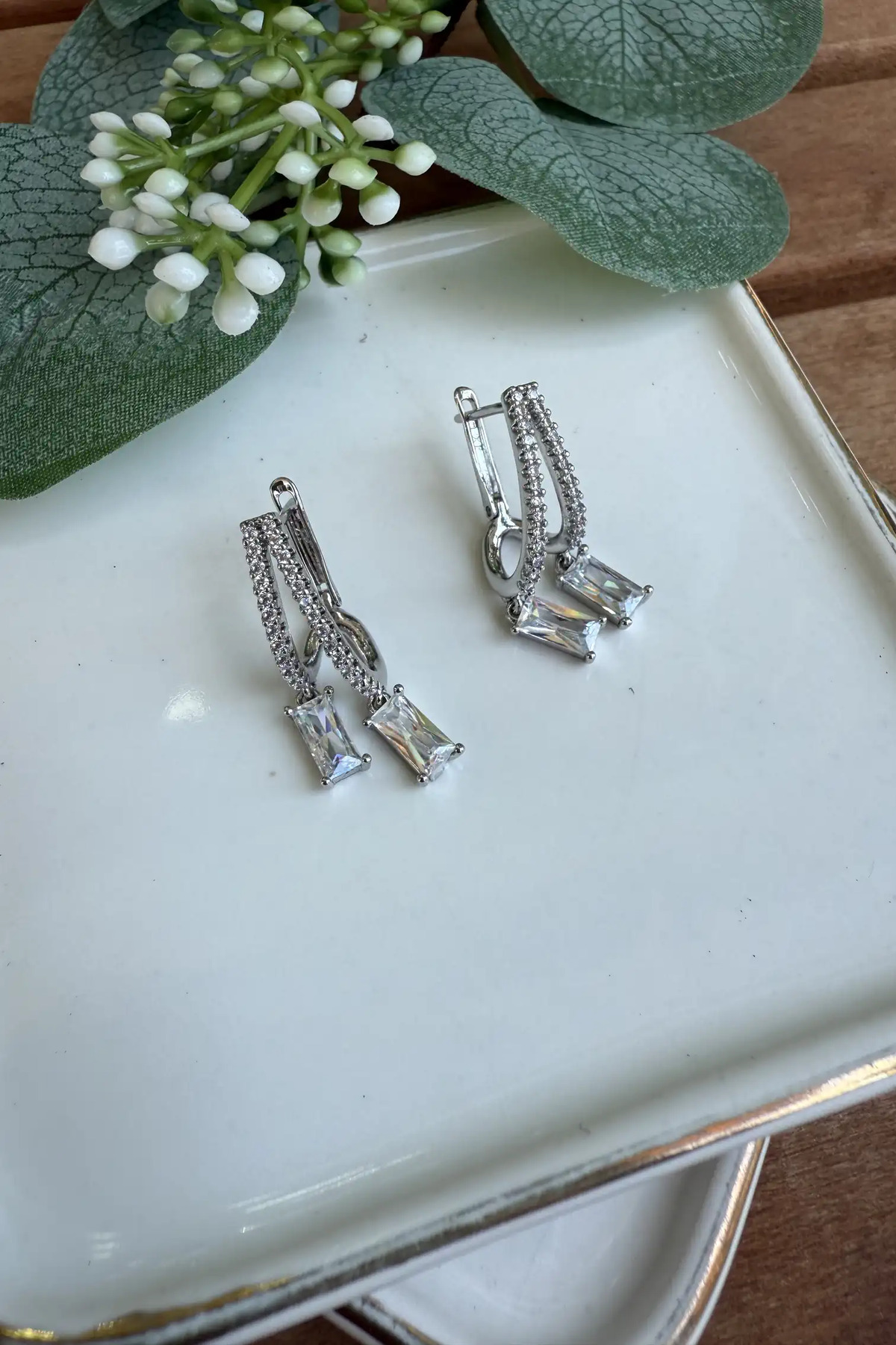 ميزات أقراط متدلية من الحجر الفولاذي المستطيل من AURA ATELIER