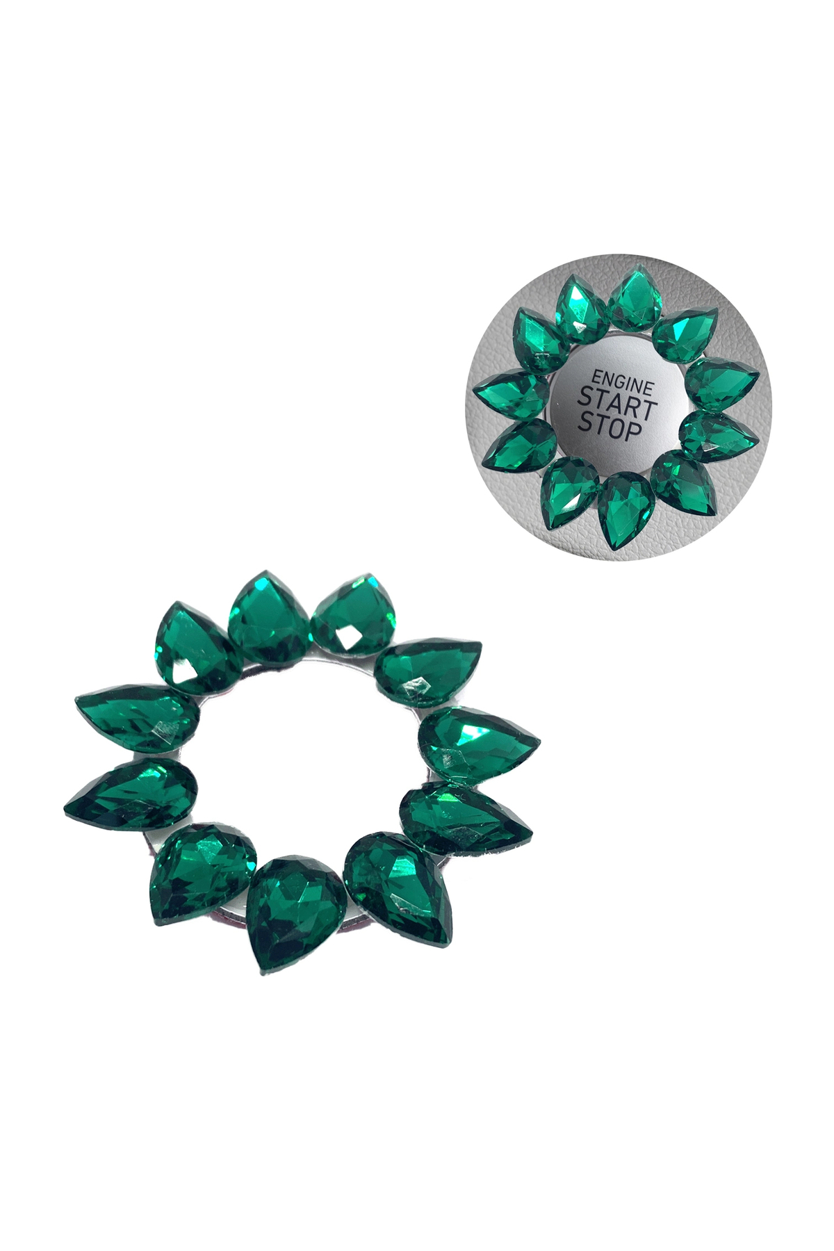 Autosheild حلقة زر إيقاف التشغيل من حجر الكريستال باللون الأخضر
