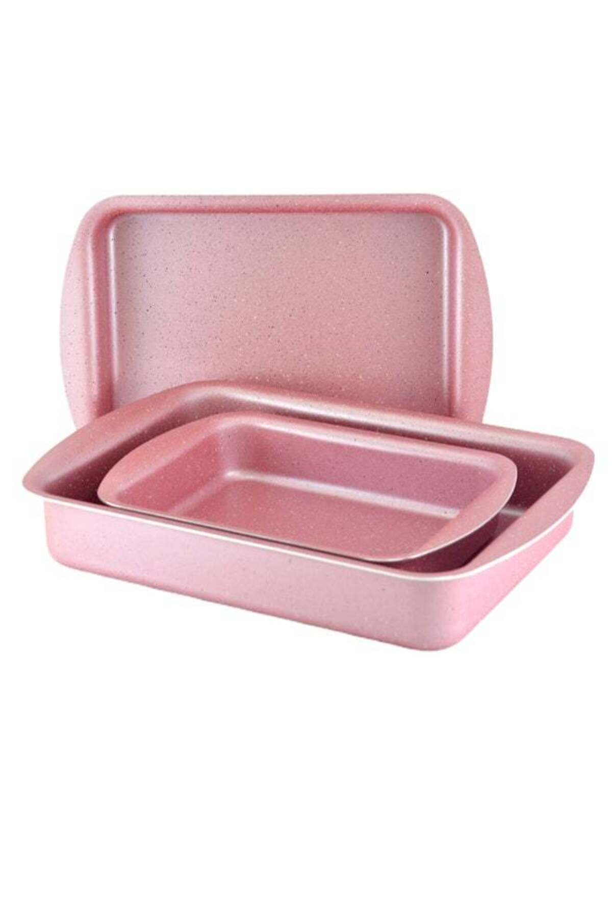 AVCI HOME MAKER طقم صواني خبز مستطيلة الشكل من هوم ميكر، مكون من 3 قطع، وردي، 28 سم