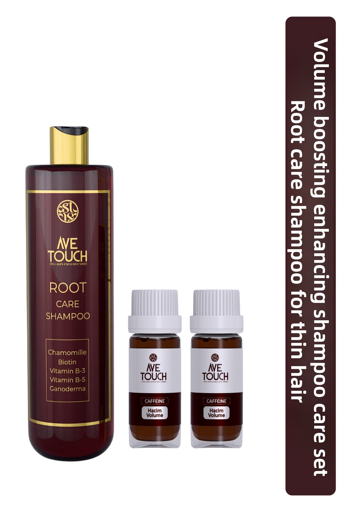 ميزات شامبو العناية بالجذور + الكافيين / مجموعة إليكسير مكثفة للشعر من AVE TOUCH