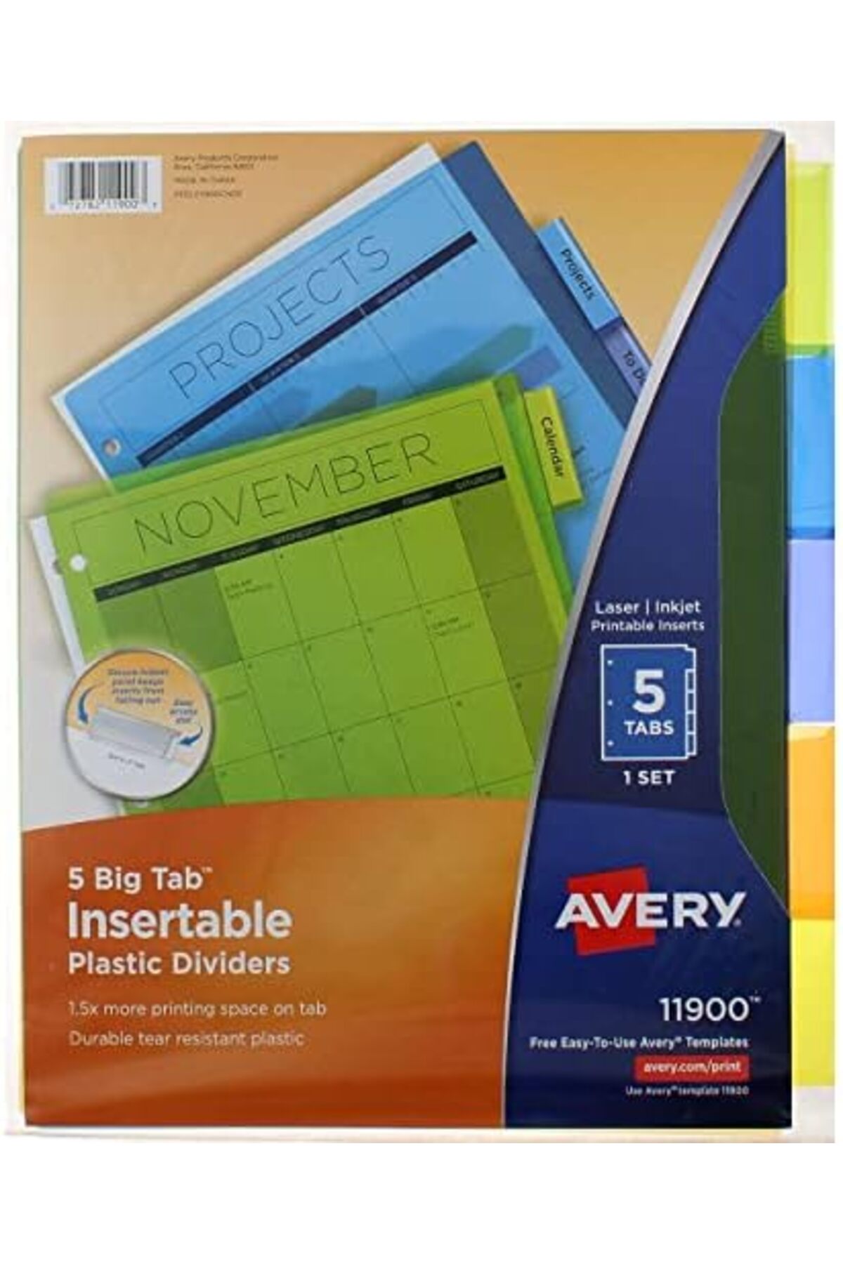 unique tab design that secures inserts to prevent falling out, providing 50% more writing space with multicolored, eye-catching durable translucent plastic suitable for frequent use. Ideal for customizing with free templates from Avery Design & Print for a professional look.
