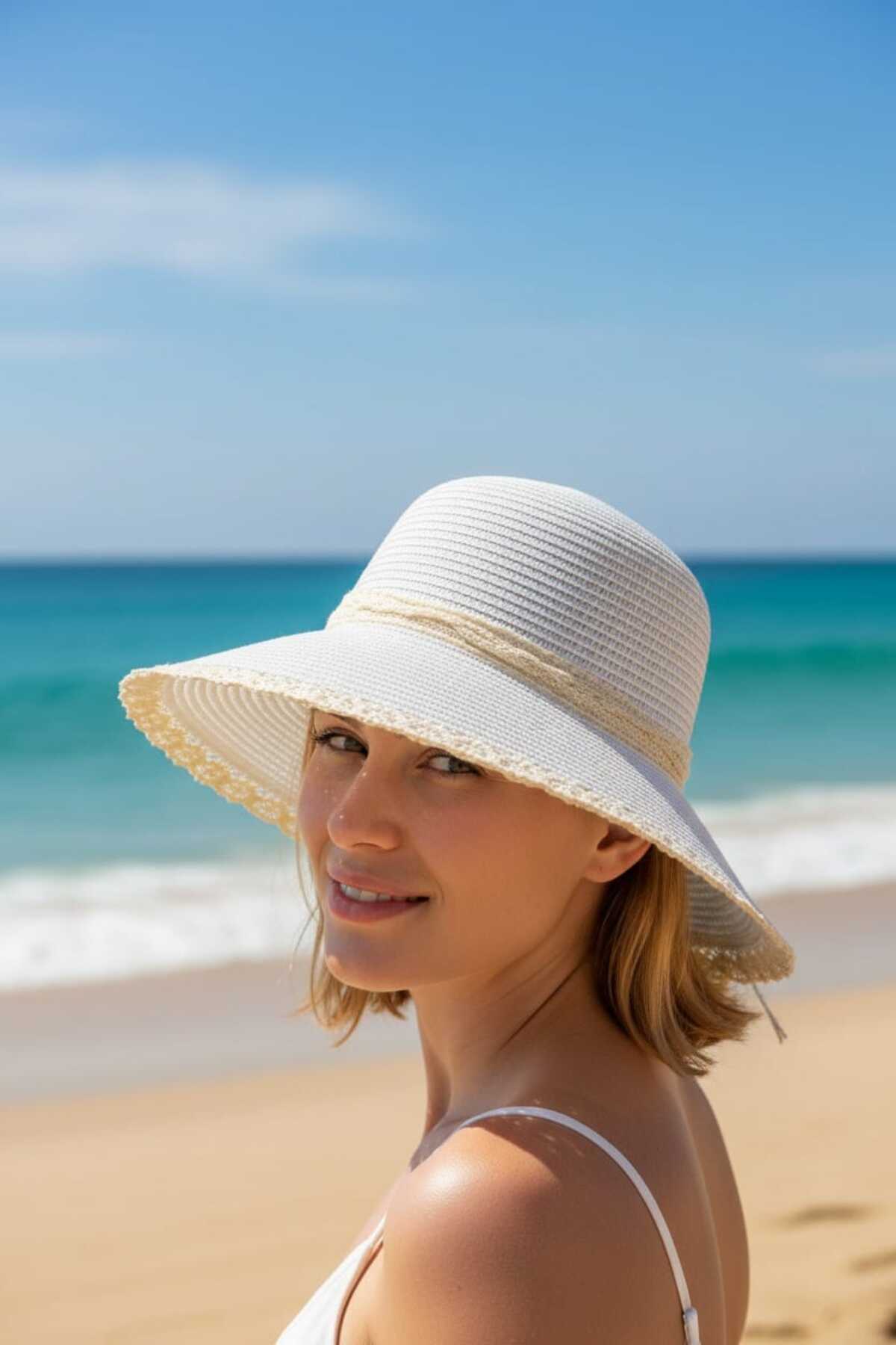 Aware Time قبعة فيلكرو نصف قمر من القش