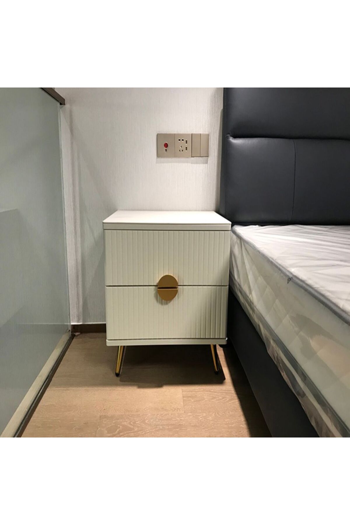ميزات طاولة جانبية للسرير بإطار من الخشب الصلب، سهلة التركيب، لون أبيض من AWD