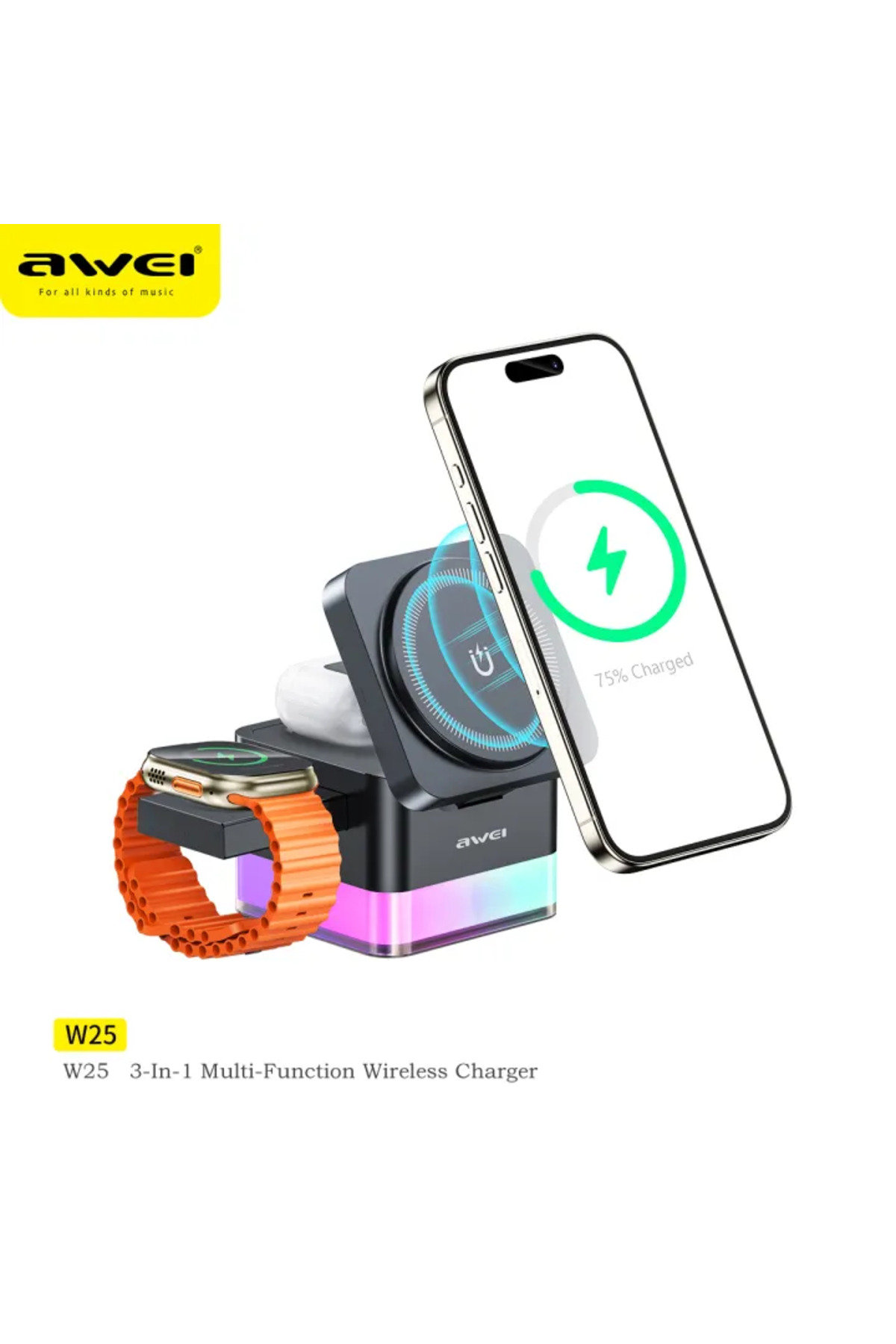 AWEI شاحن لاسلكي متعدد الوظائف 3 في 1 W 25
