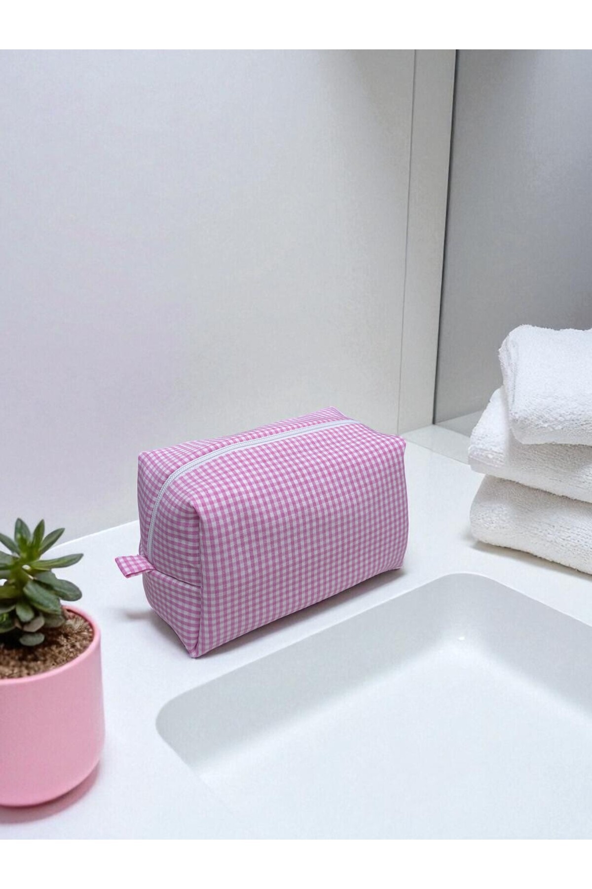 AXUM حقيبة مكياج منقوشة باللون الوردي - حجم كبير