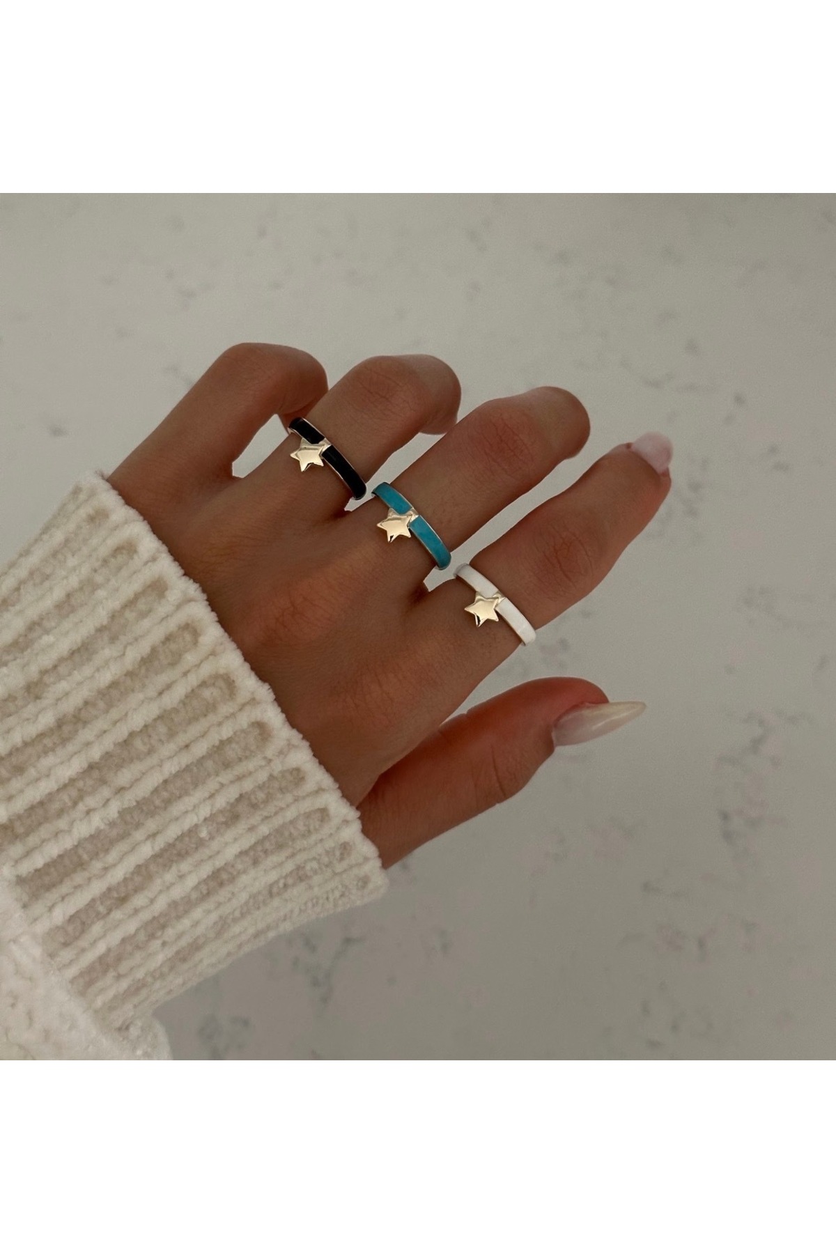ميزات خاتم قابل للتعديل على شكل نجمة من المينا البيضاء من AychaAksesuar