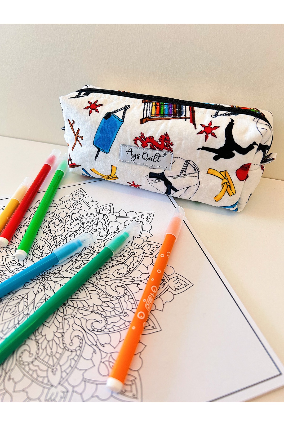 Ays Quilt حامل أقلام منقوش على شكل كاراتيه