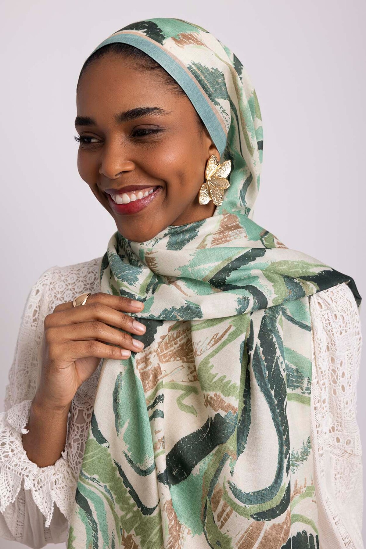 ميزات شال منقوش بتصميم ديفري فرشا من جانب واحد - أخضر نعناعي من Ayshara