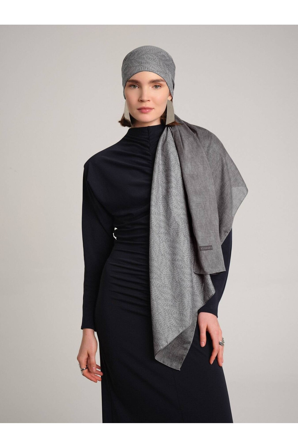 Ayshara شال منقوش مزدوج الجوانب من بوغي - رمادي حجري