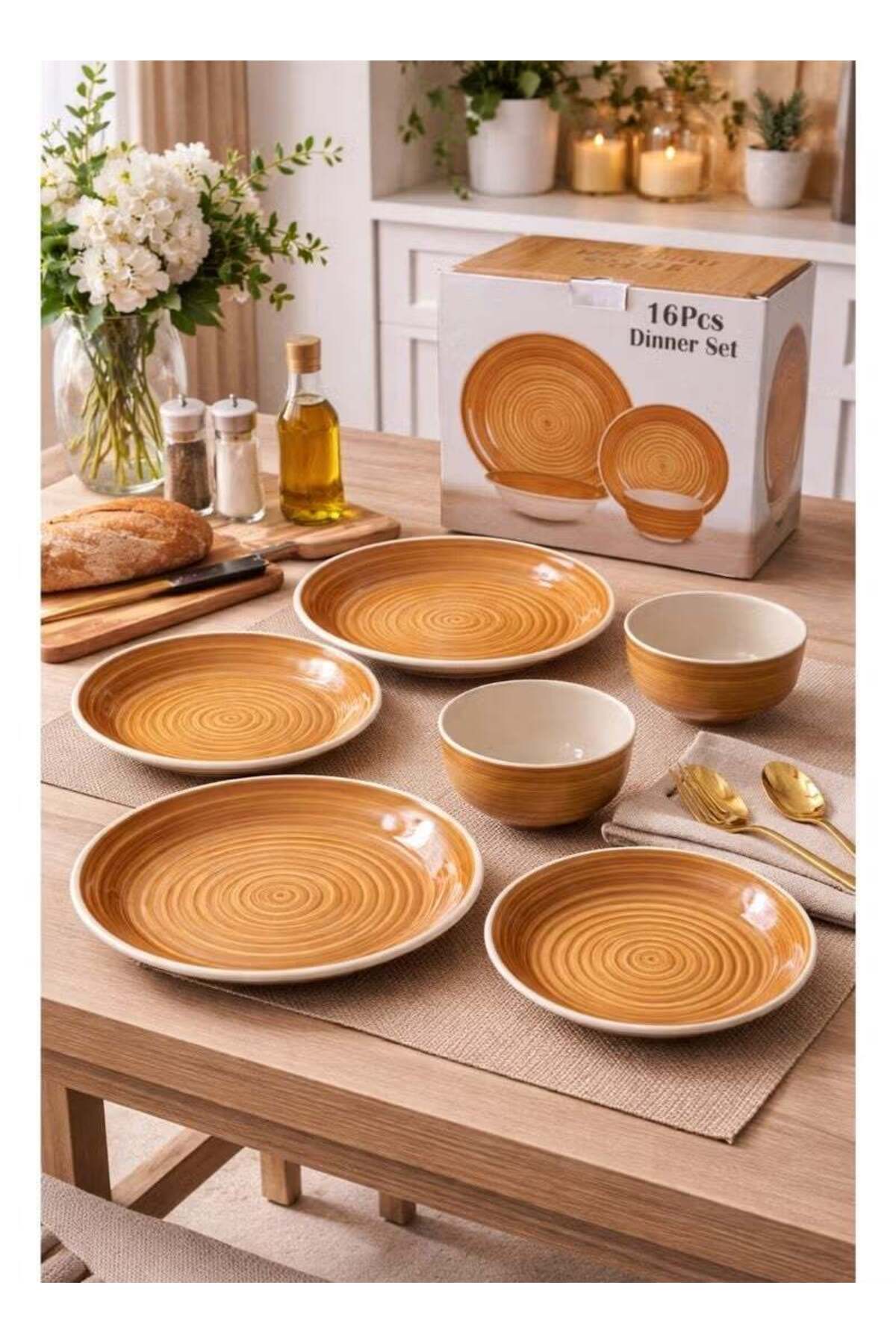 AZOZ MERCHLY طقم عشاء من السيراميك مكون من 16 قطعة