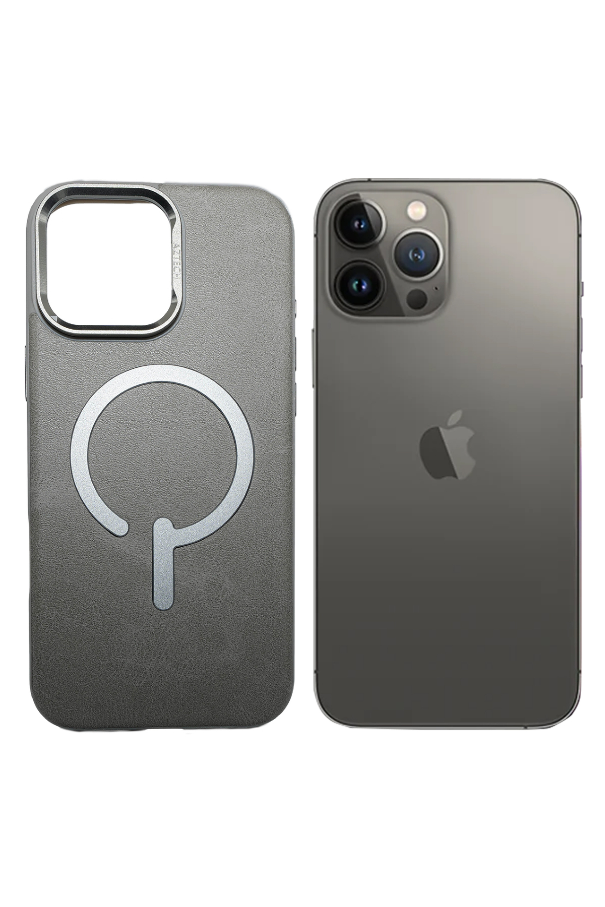 Aztech جراب جلدي فاخر لهاتف iPhone (رمادي تيتانيوم، iPhone 14 Pro Max)