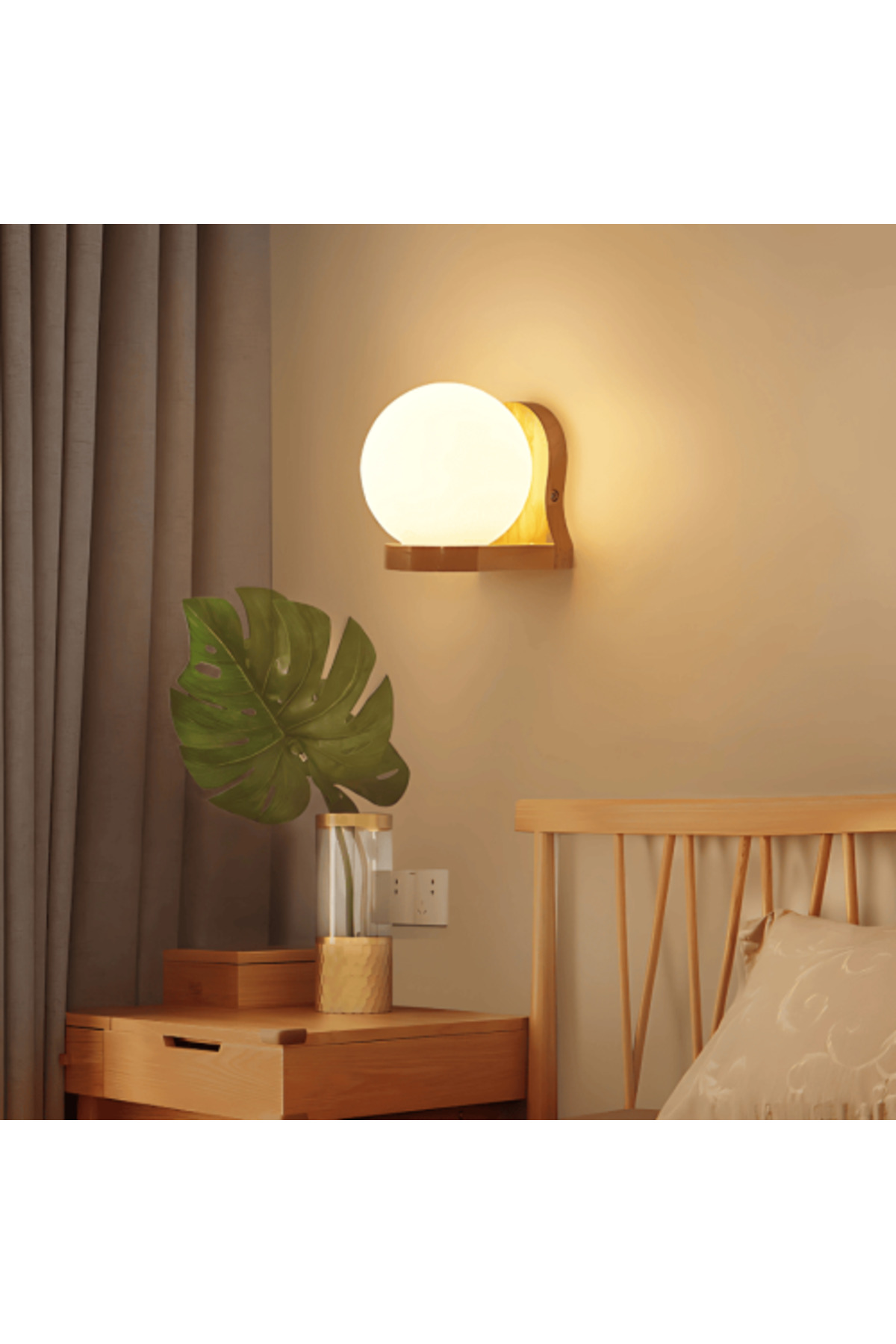 BAB مصباح حائط حديث بقاعدة خشبية E27