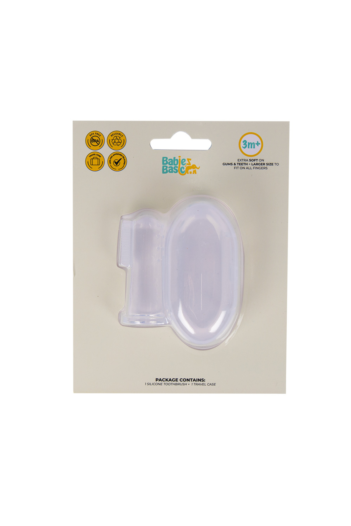 Babies Basic فرشاة أسنان بيبيز بيسيك مع حقيبة سفر للأطفال - فرشاة أسنان شفافة من السيليكون