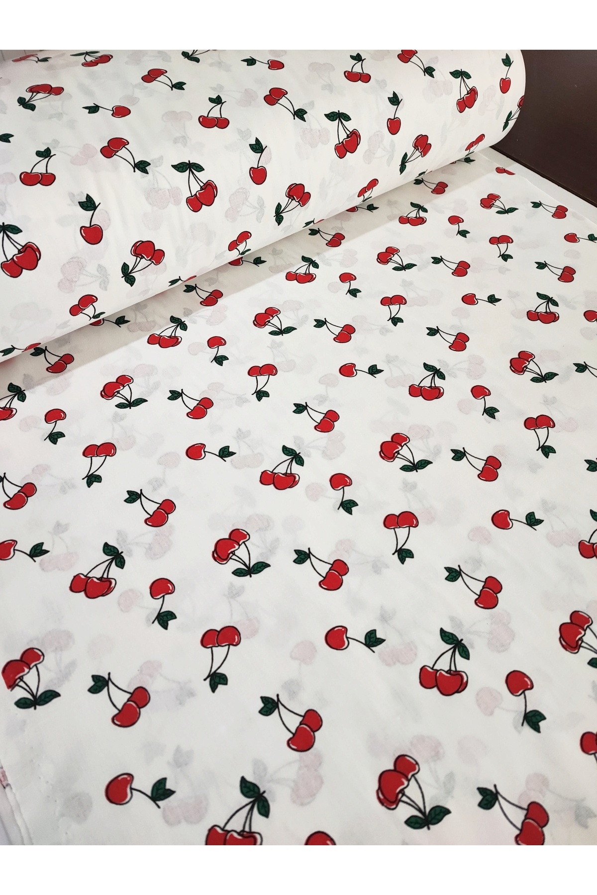 Babynia قماش بوبلين قطن 100% نمط الكرز منقوش عرض 240 سم