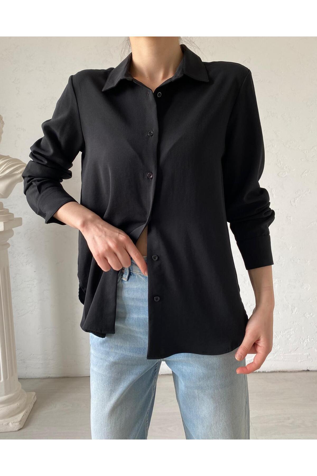 ميزات قميص كريب أساسي أسود من Bade Butik