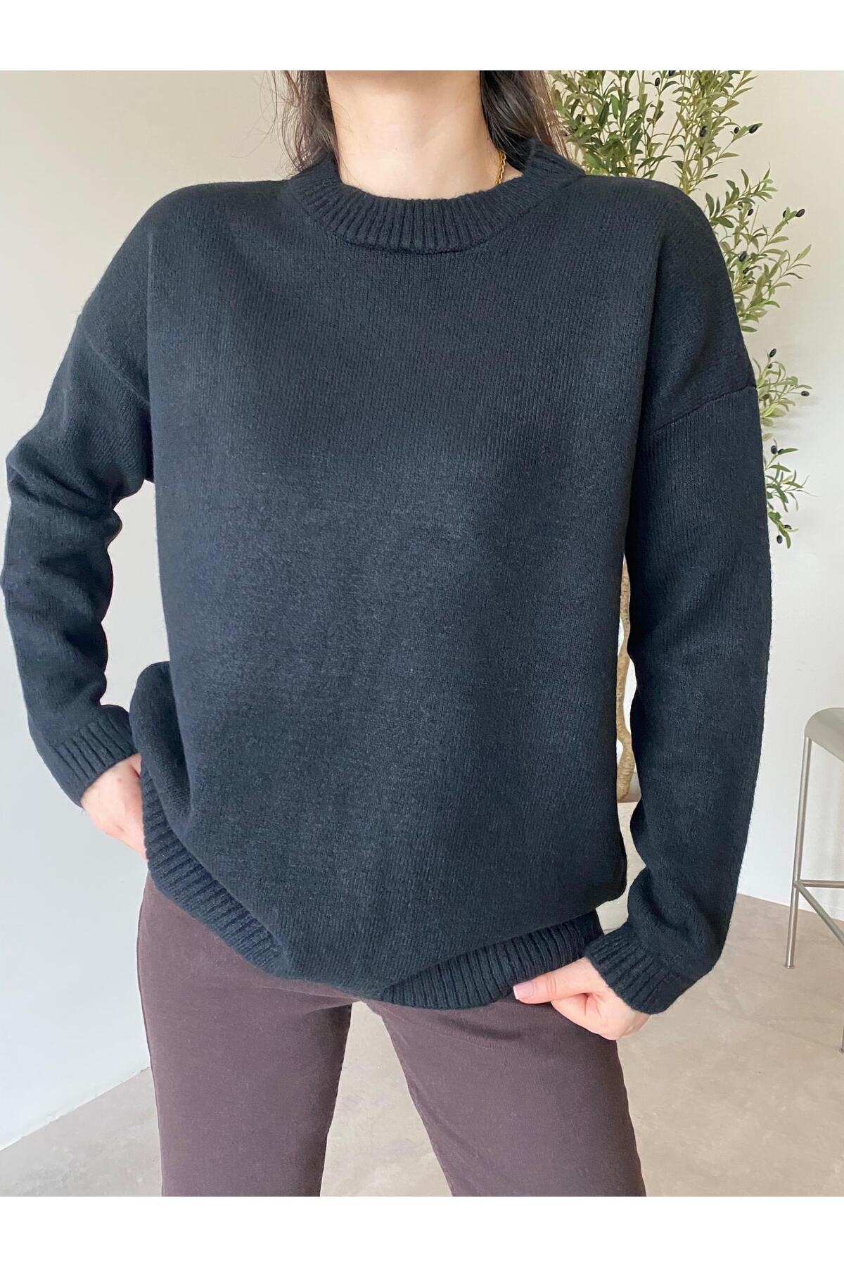 ميزات سترة سوداء ذات رقبة دائرية من Bade Butik