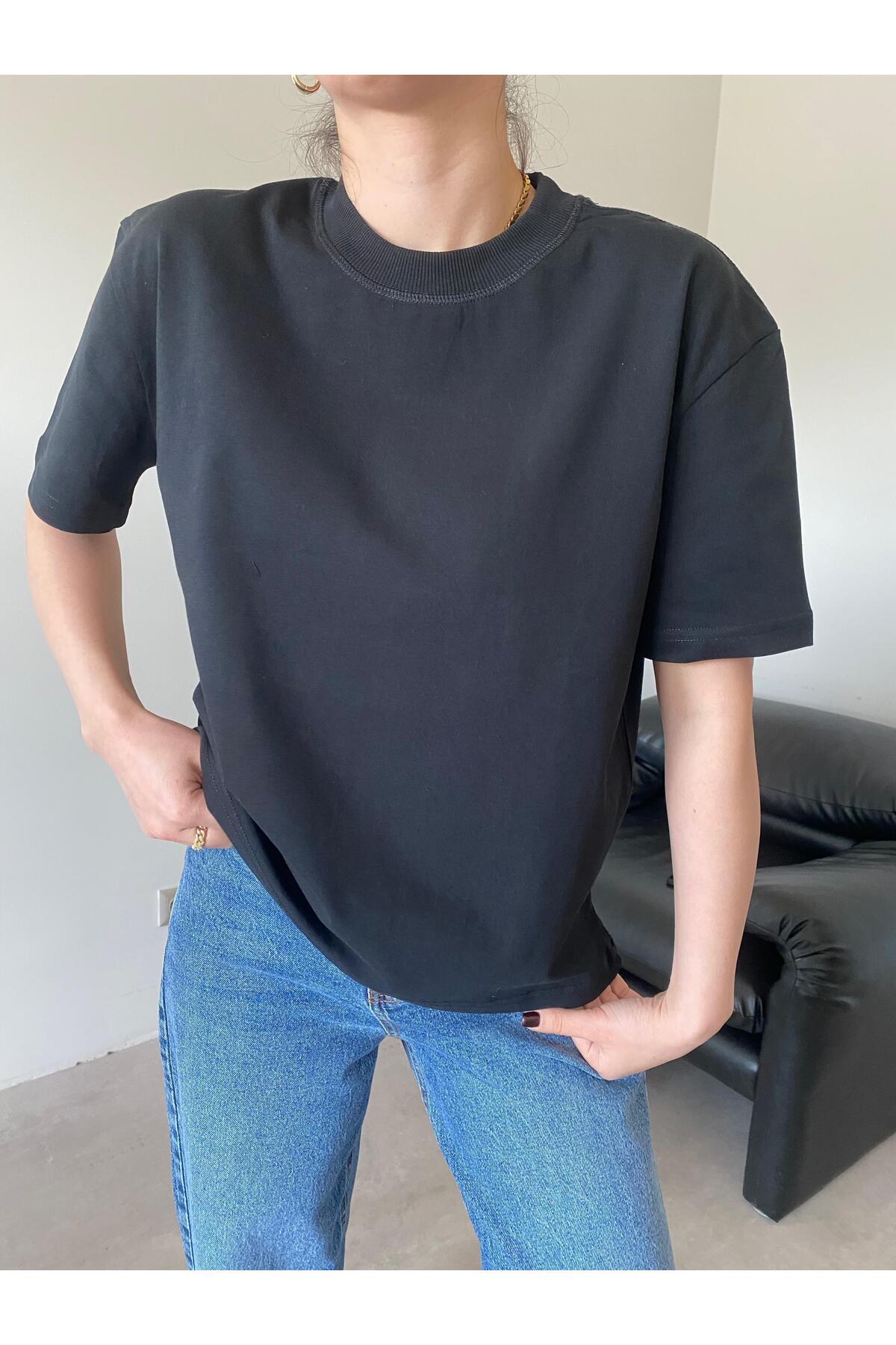 ميزات تي شيرت أسود برقبة دائرية من Bade Butik