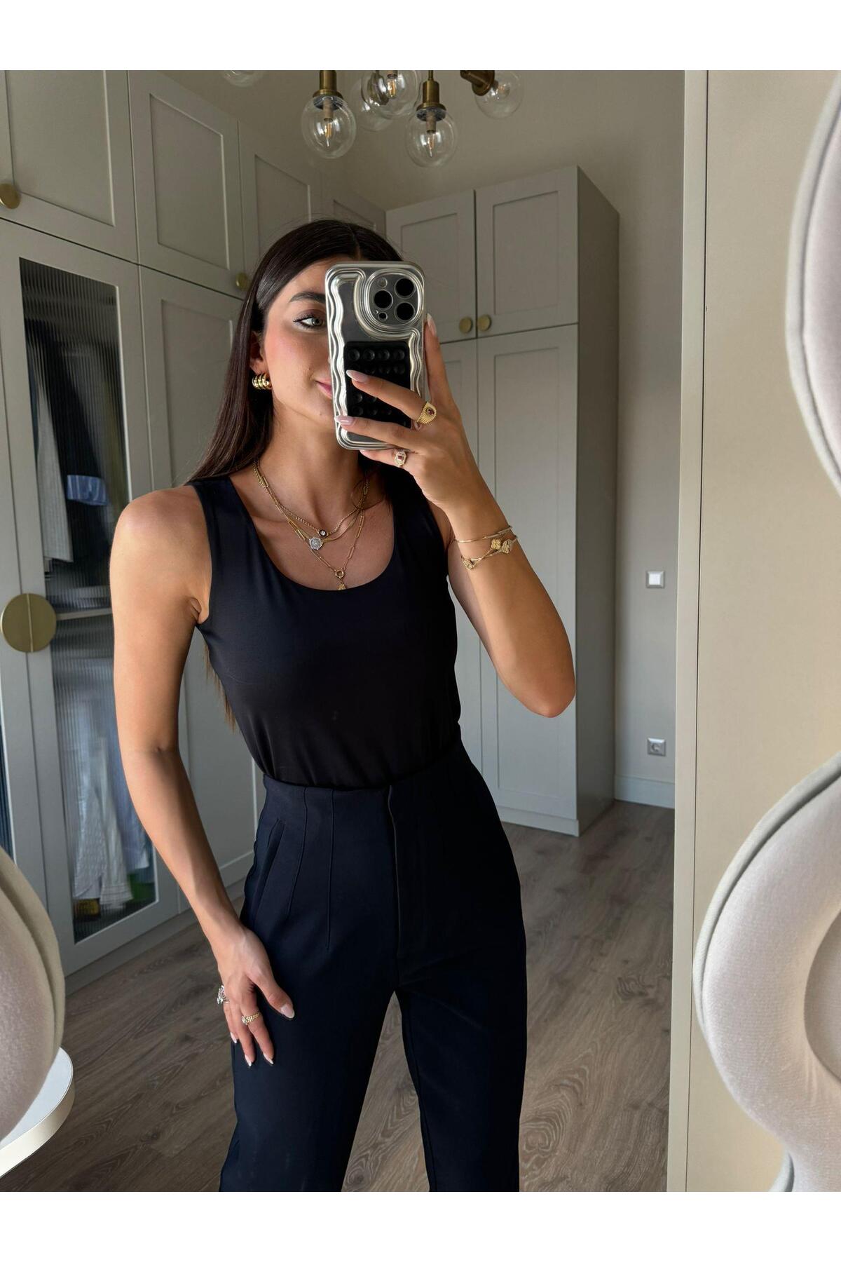 ميزات بلوزة أساسية بأكمام صفر سوداء من Bade Butik