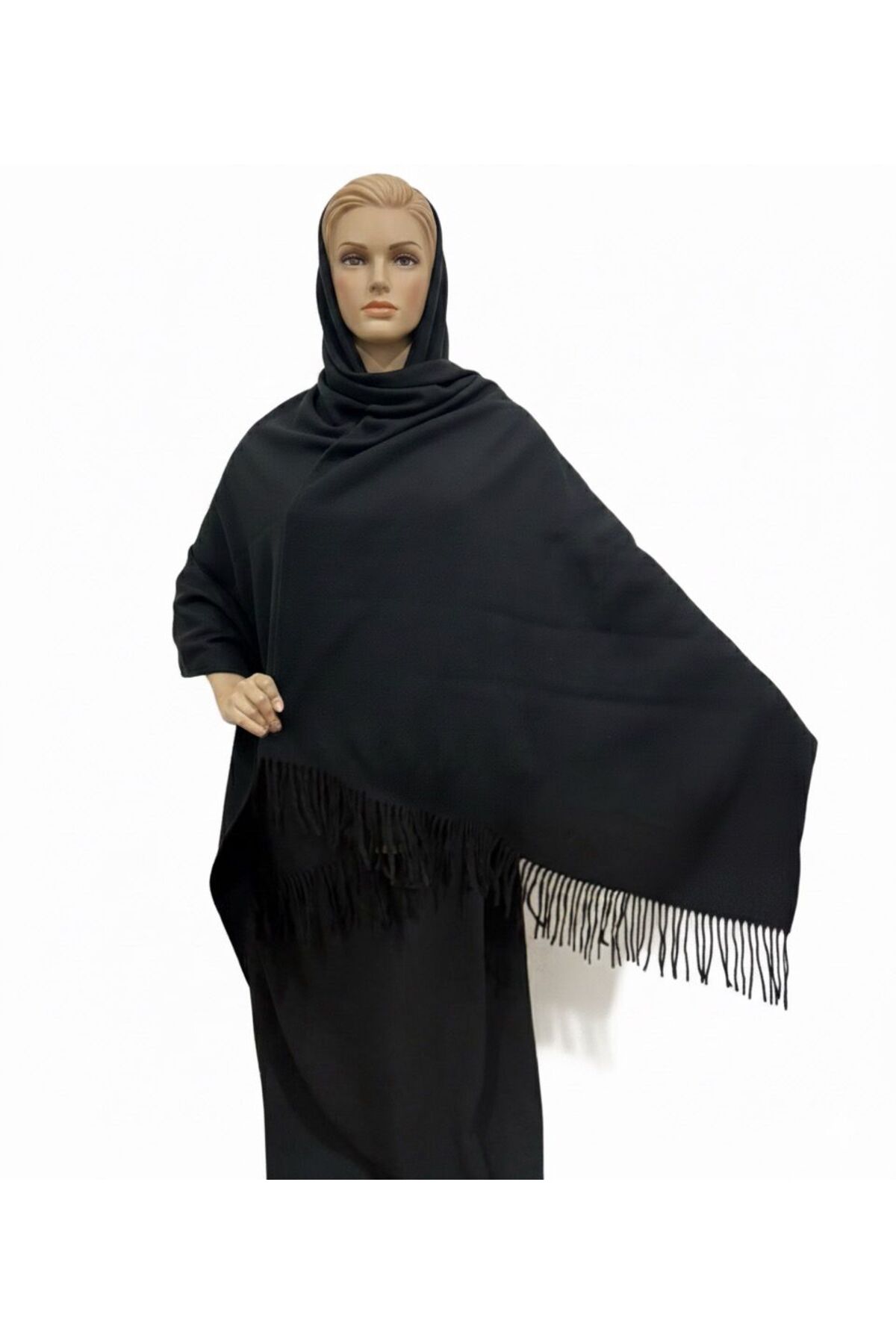 badela شال اسود مستطيل شتوي ثقيل