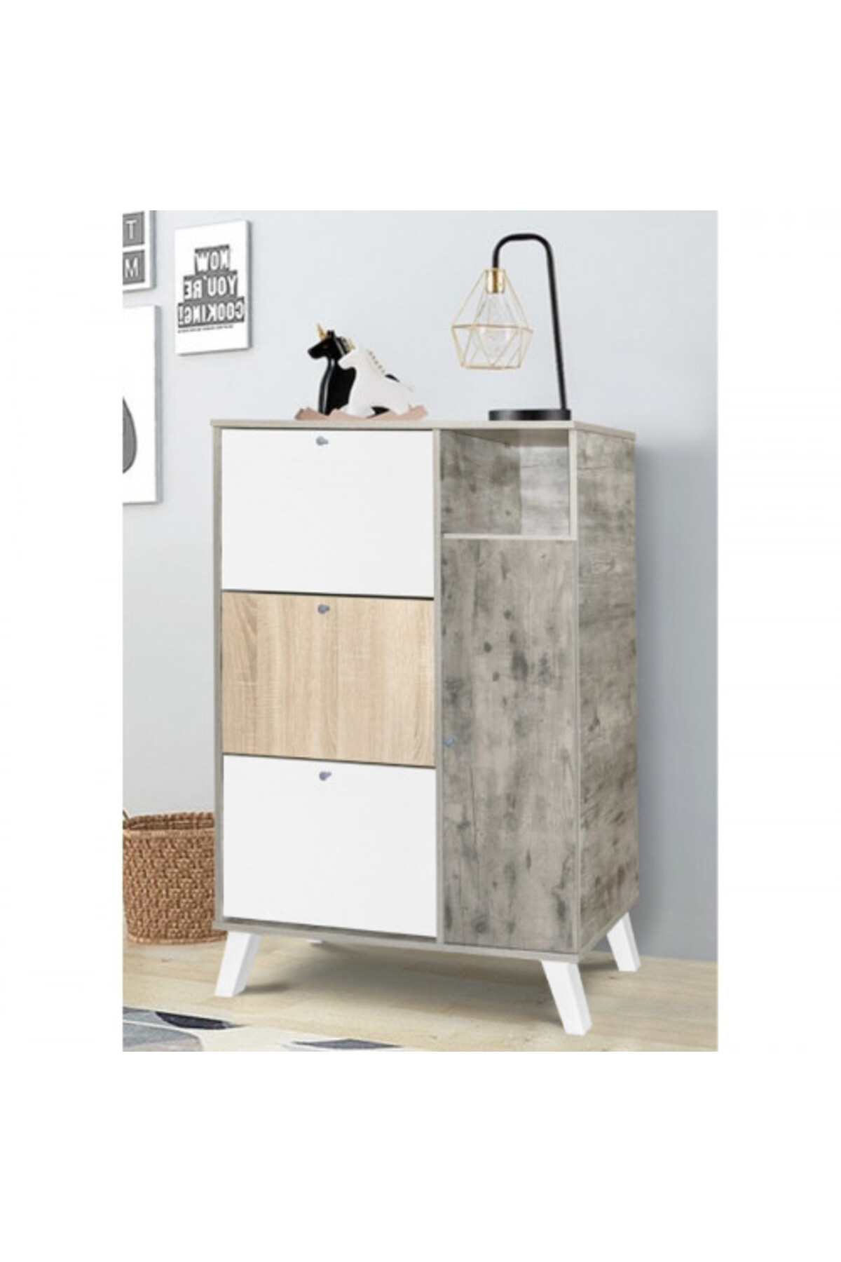 ميزات خزانة أحذية باللون الرمادي والأبيض من BAITY