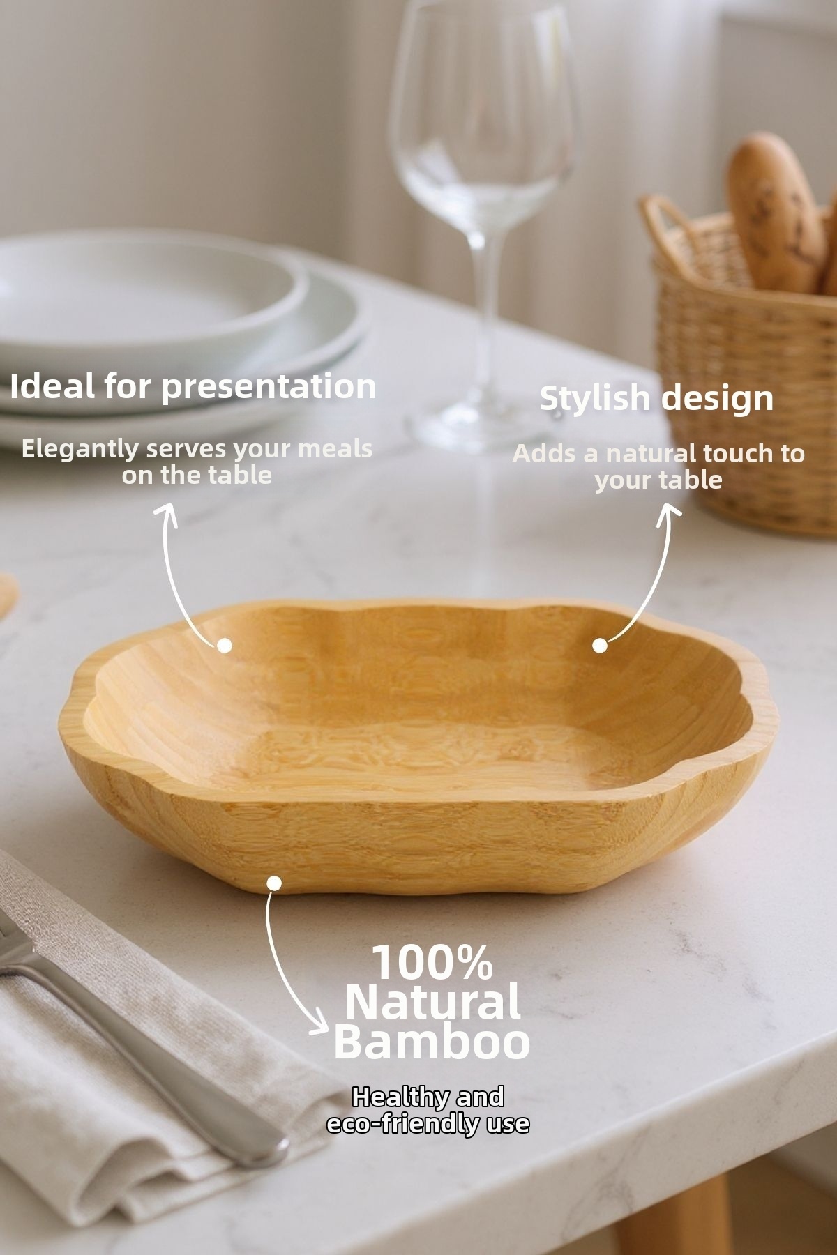 ميزات وعاء سلطة وفواكه من تريمبل مستطيل ضحل من Bambum