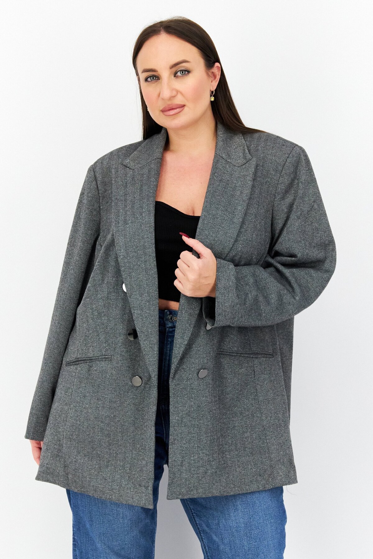 ميزات بليزر سادة للنساء بمقاسات كبيرة، مجموعة فضية من Bar III