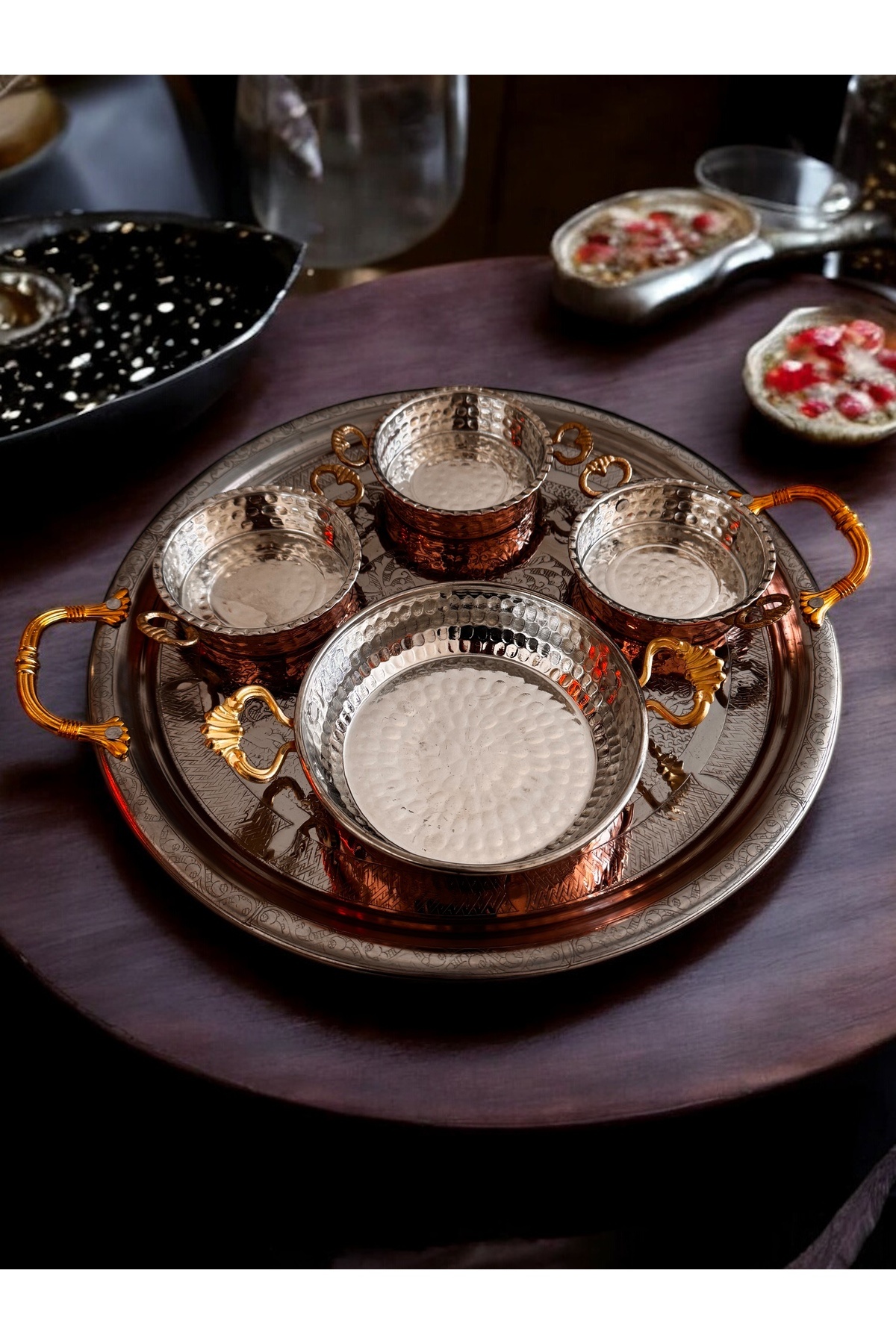 ميزات طقم صواني تقديم نحاسية للإفطار من BARITCIOGLU