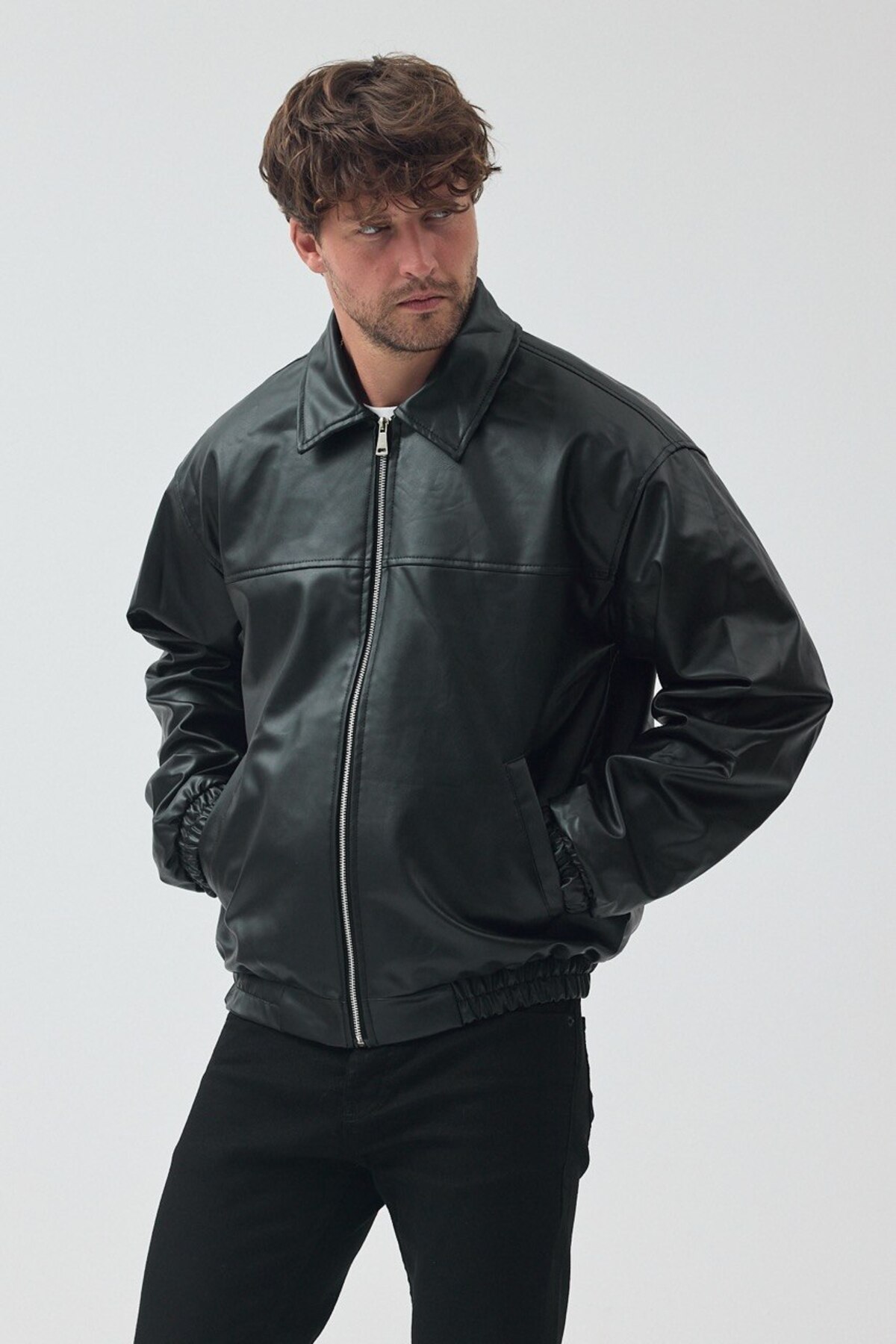 BASEL.CO سترة جلدية أساسية للجنسين قصة فضفاضة