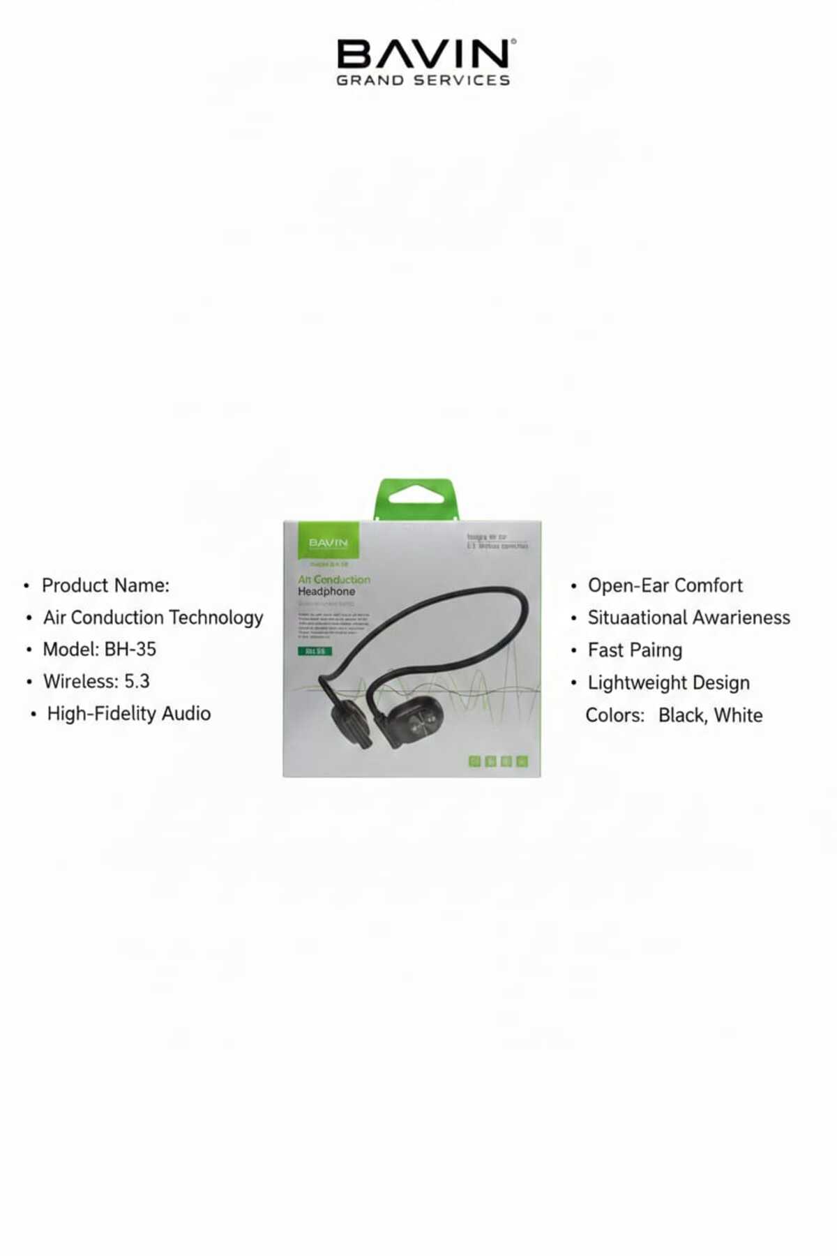 Bavin سماعات رأس موصلة للهواء