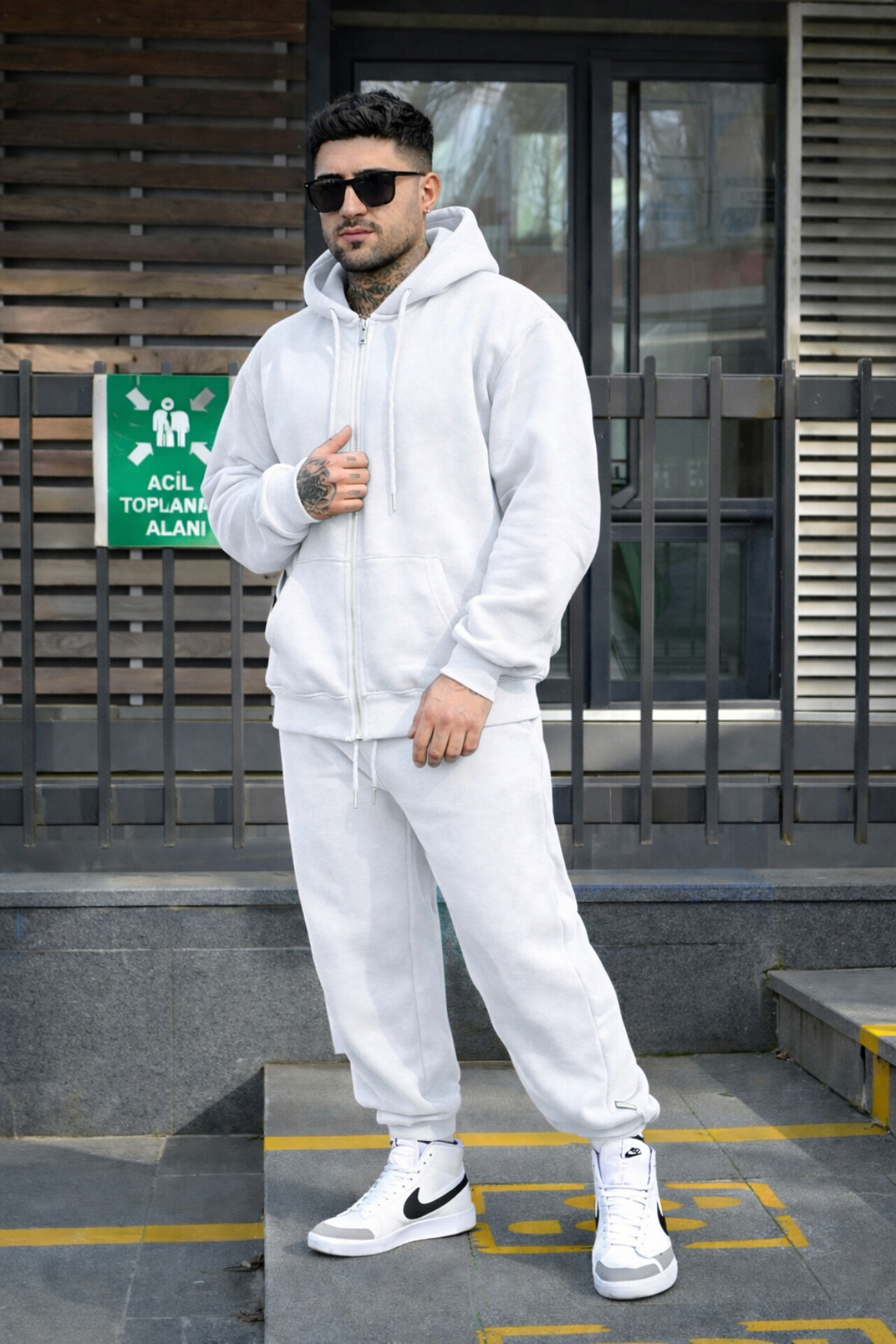 ميزات طقم كارديجان رجالي شتوي سميك بثلاثة خيوط، بدون طباعة، سادة اللون من BayBayan