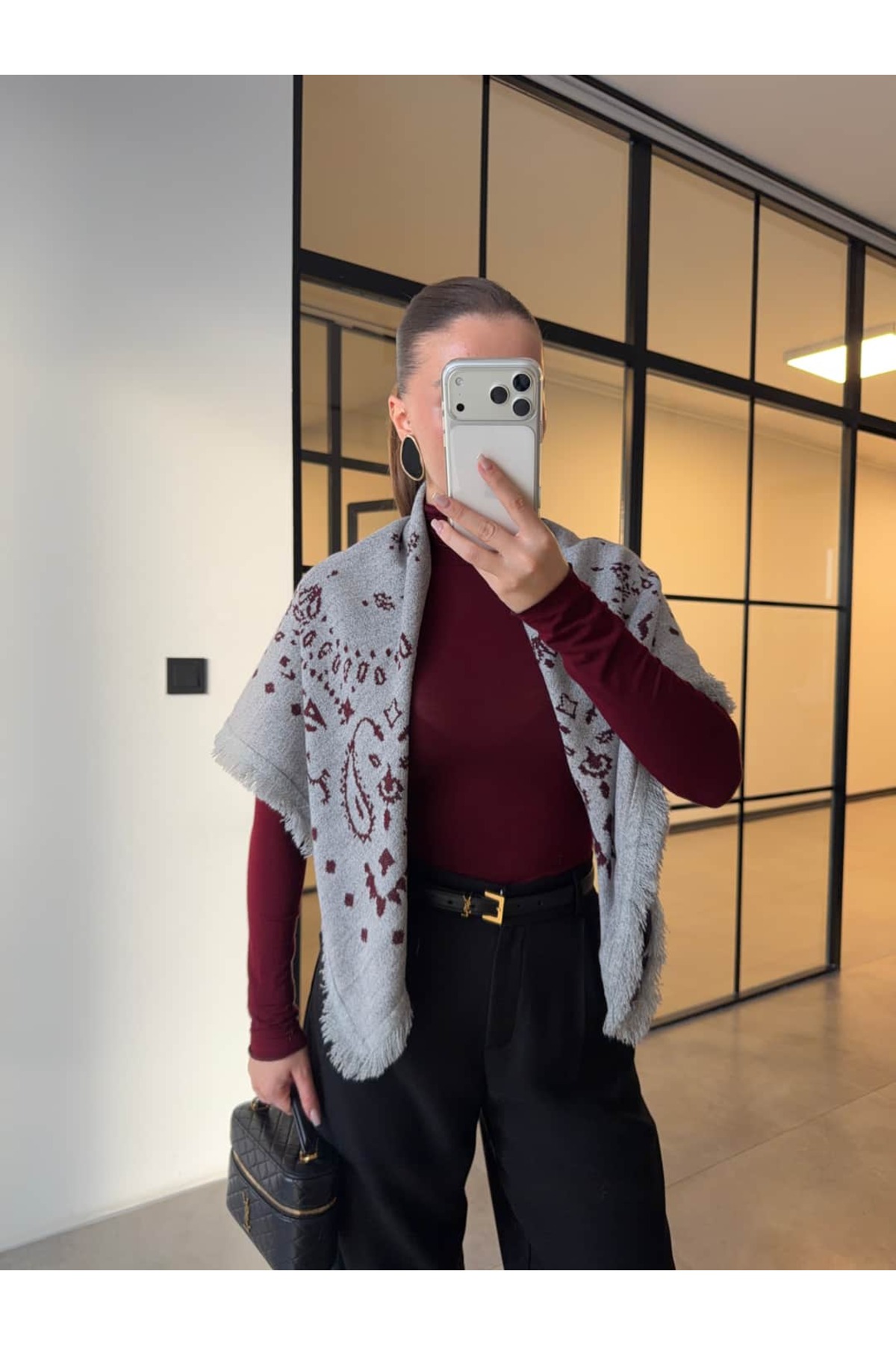 ميزات شال تريكو منقوش من BB Bensu Buyruk