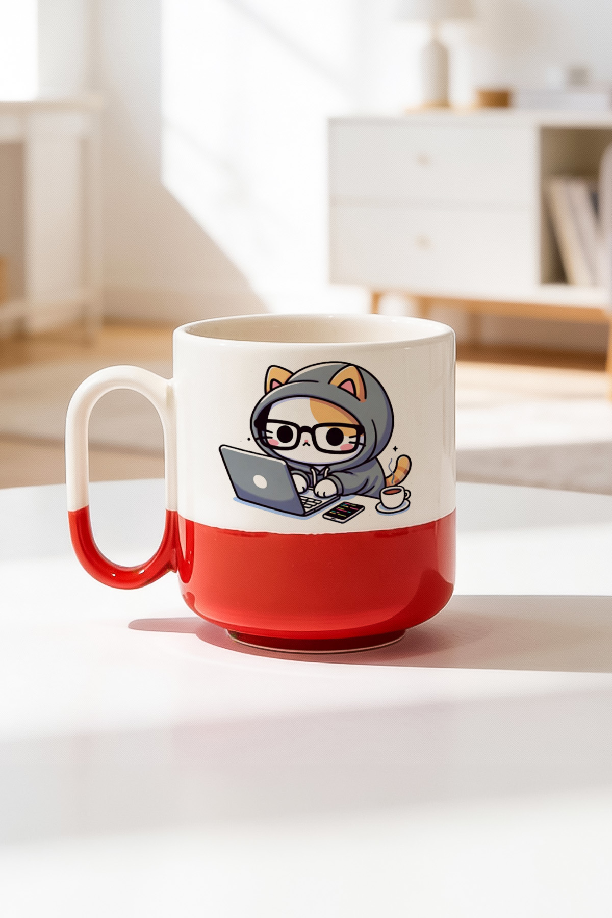 ميزات كوب برو مطبوع من السيراميك بتصميم قطة الكمبيوتر سعة 330 مل من BB TRADE