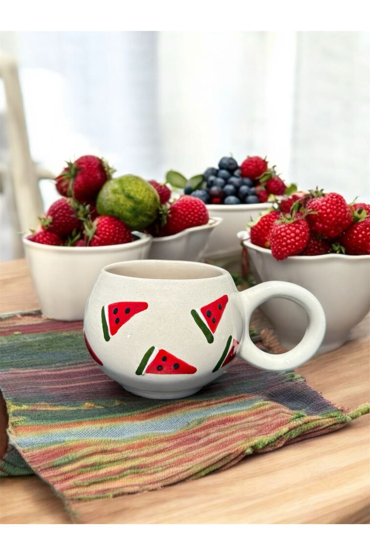 ميزات كوب سيراميك منقوش بشرائح البطيخ مصنوع يدويًا من BB TRADE