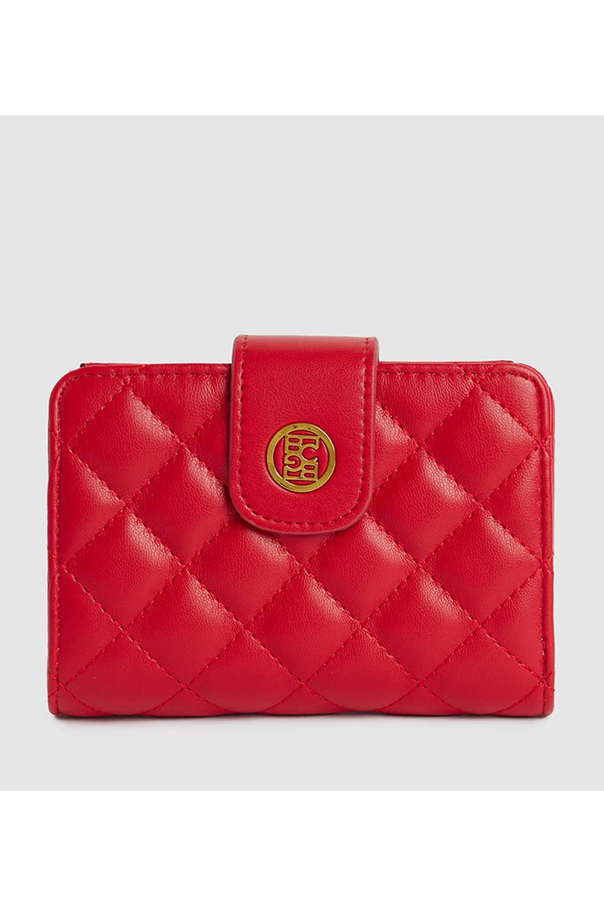 ميزات محفظة قصيرة مبطنة باللون الأحمر من BCBG