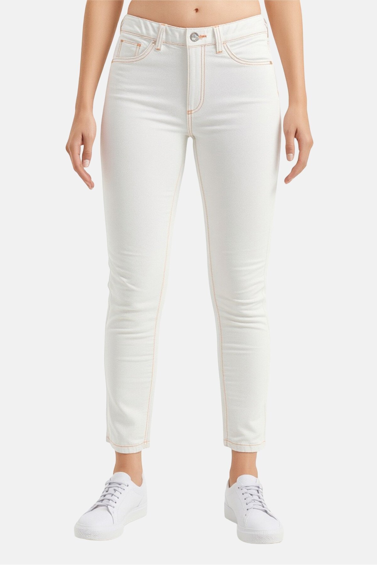 ميزات بنطلون جينز نسائي مطاطي بقصّة عادية، لون أبيض فاتح من BDG