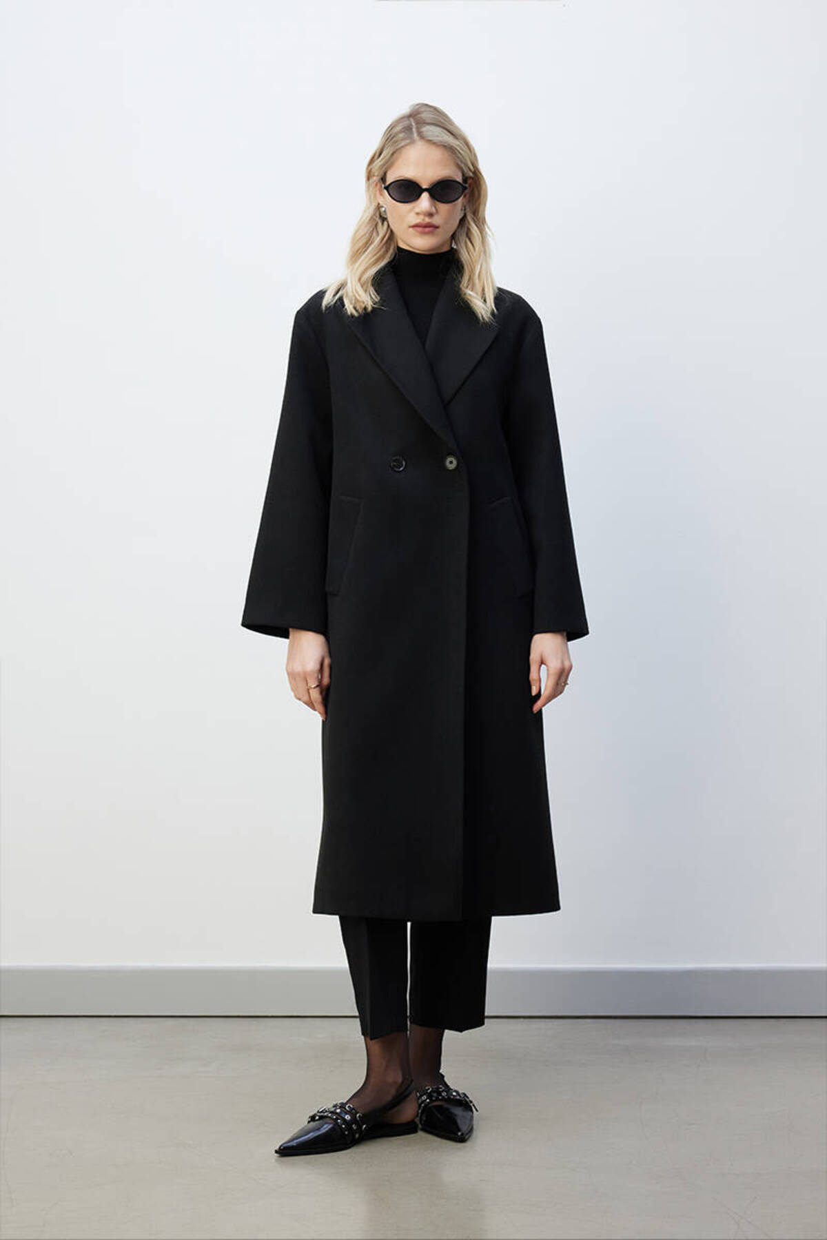 BE BLUE معطف كلاسيكي أسود بأزرار مزدوجة