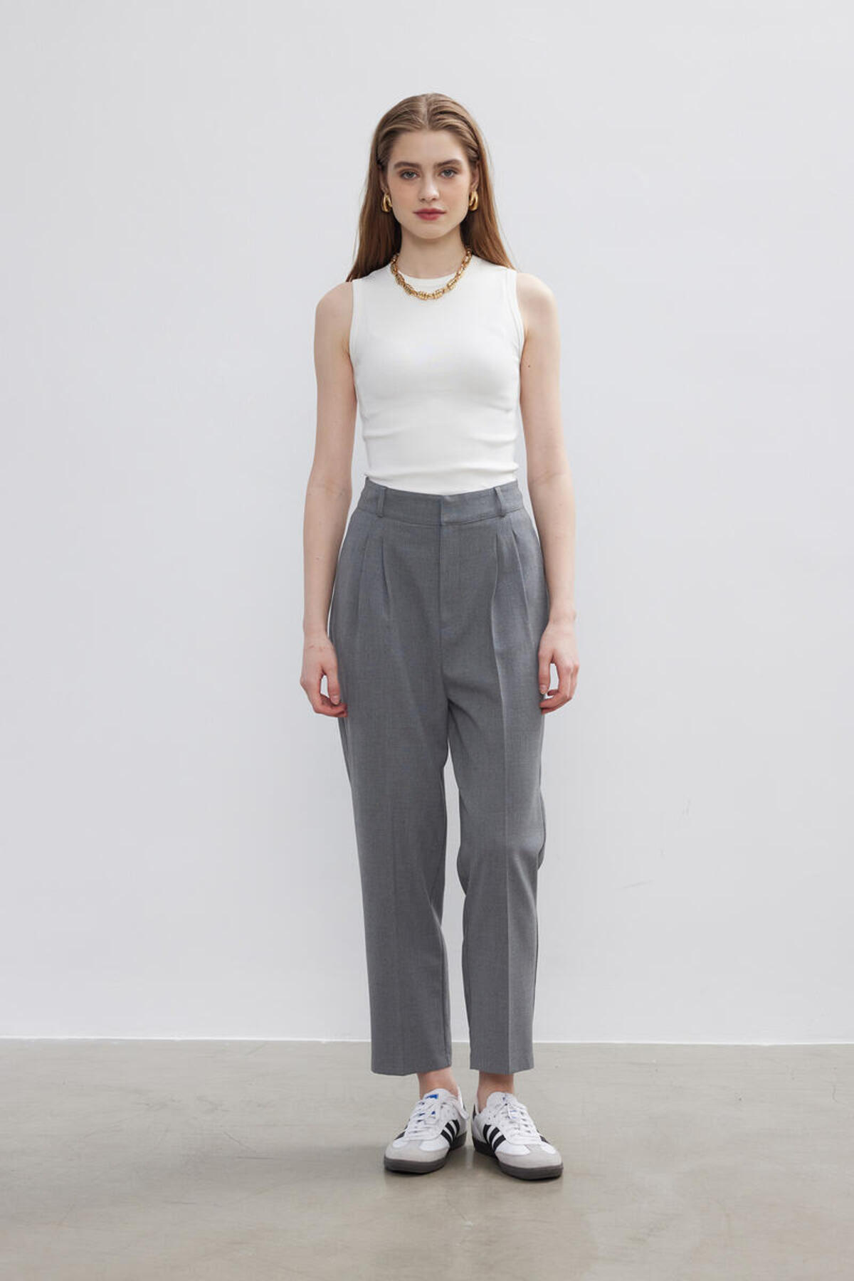 ميزات بنطلون رمادي بخطوط حديدية من BE BLUE