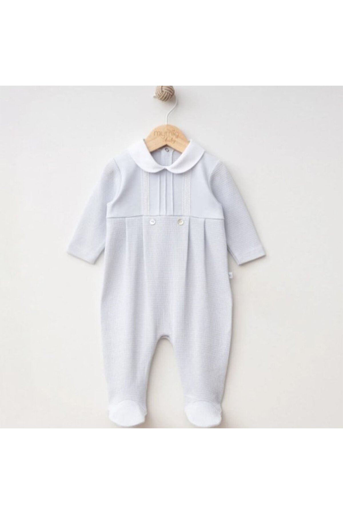 ميزات بذلة للأطفال الرضع ذات ياقة زرقاء وأزرار مع جوارب من bebegen